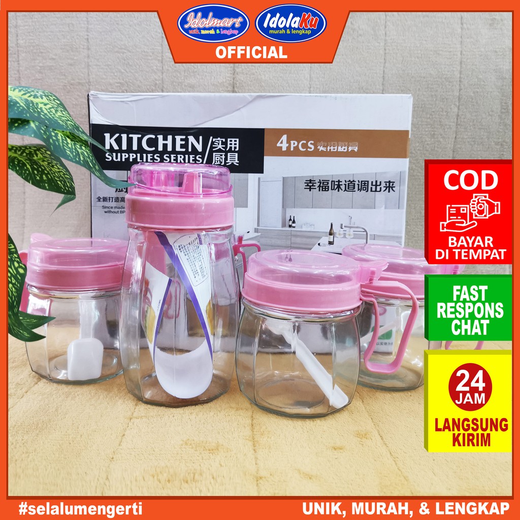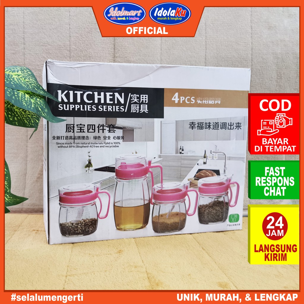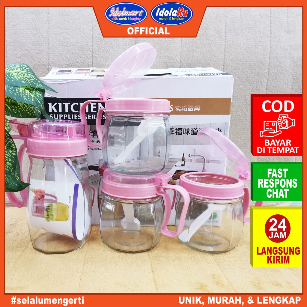IDOLMART Tempat Bumbu Minyak 4 Pcs / Tempat Bumbu Dapur Set