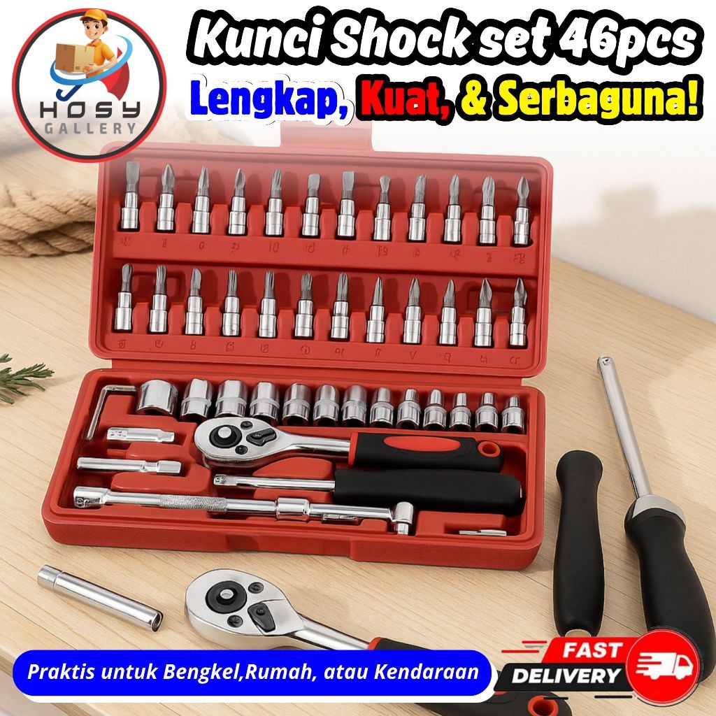 Kunci Shock Set 46 PCS – Obeng Socket Set Lengkap 1/4 Inch Multifungsi Premium Untuk Bengkel & Rumah