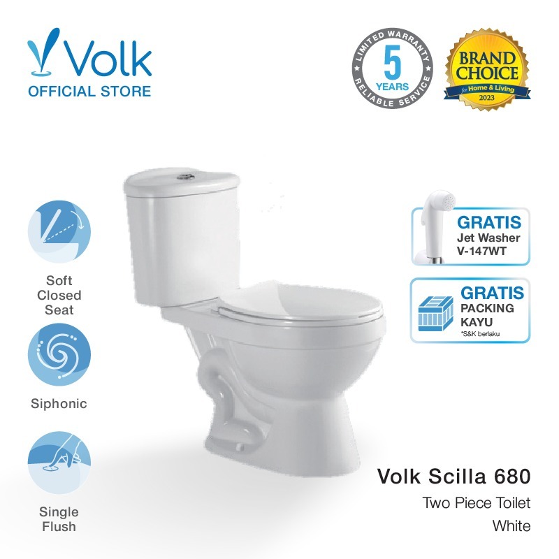 VOLK 680 TWO PIECE TOILET WHITE AS 30CM + Packing Kayu + Jet Washer V147 White