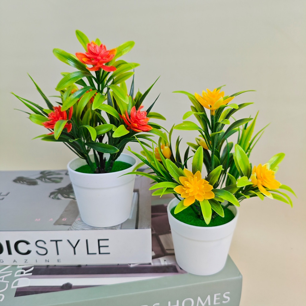 Pot Bunga Hias Plastik Tanaman Bonsai Ornamen Dekorasi Rumah Lotus Flower Artificial Import Murah PBP15