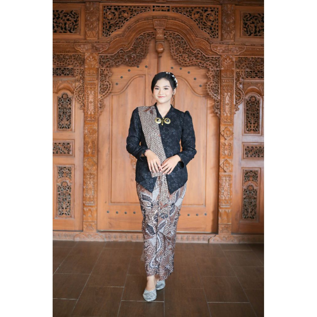 setelan kebaya janggan Burgundy dan set rok slendang