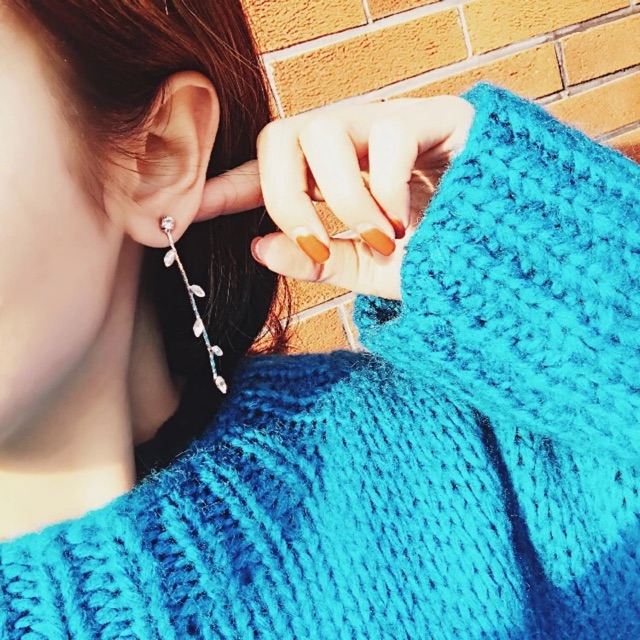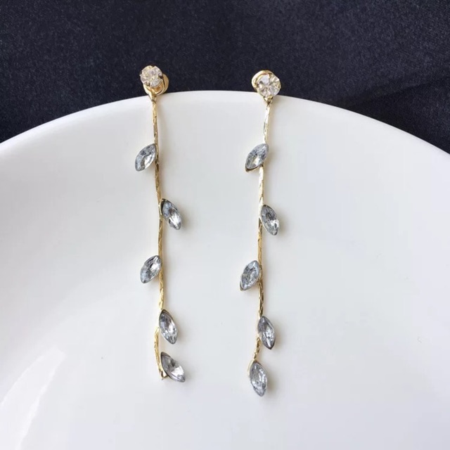 Anting panjang gold simpel daun permata party pesta kondangan import korea jepang murah elegan