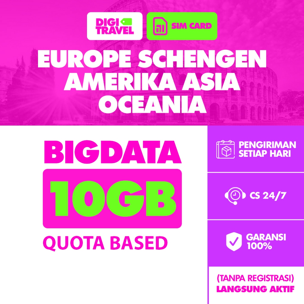 DIGITRAVEL SIM Card Eropa Europe Amerika Australia Asia Kuota Internet Telfon dan SMS Langsung Aktif