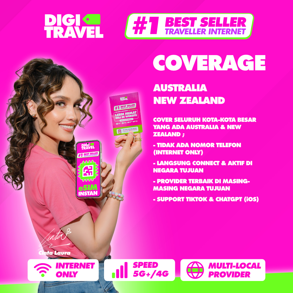 DIGITRAVEL SIM Card Australia Sydney New Zealand Unlimited Data Internet Roaming Langsung Aktif
