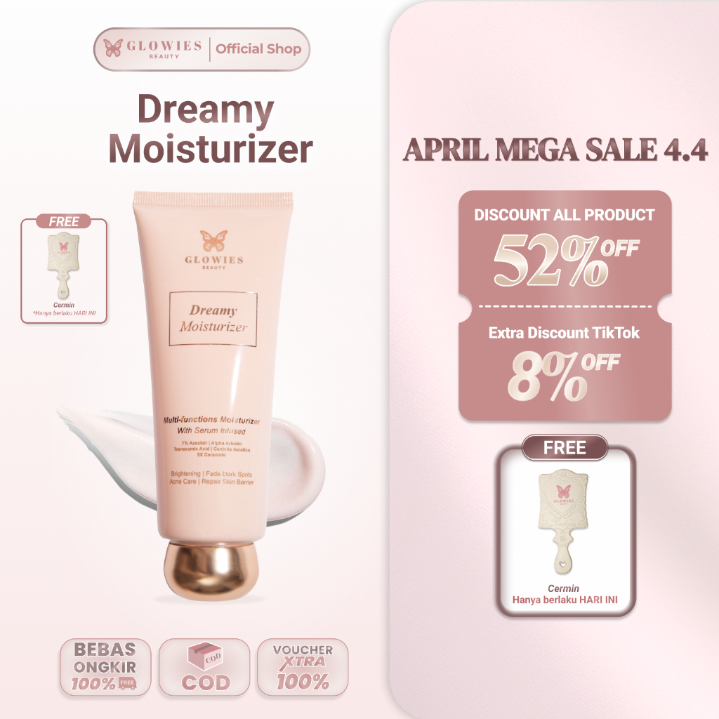 [Dr. Incognito Approved] Glowies Dreamy Moisturizer 80ml Formulasi Korea 7% Azeclair 6% Niacinimide Alpha Arbutin 5x Ceramide Pelembab wajah Busui Friendly membantu Mencerahkan Meratakan Menghilangkan jerawat PIE PIH Memperbaiki Skin Barrier