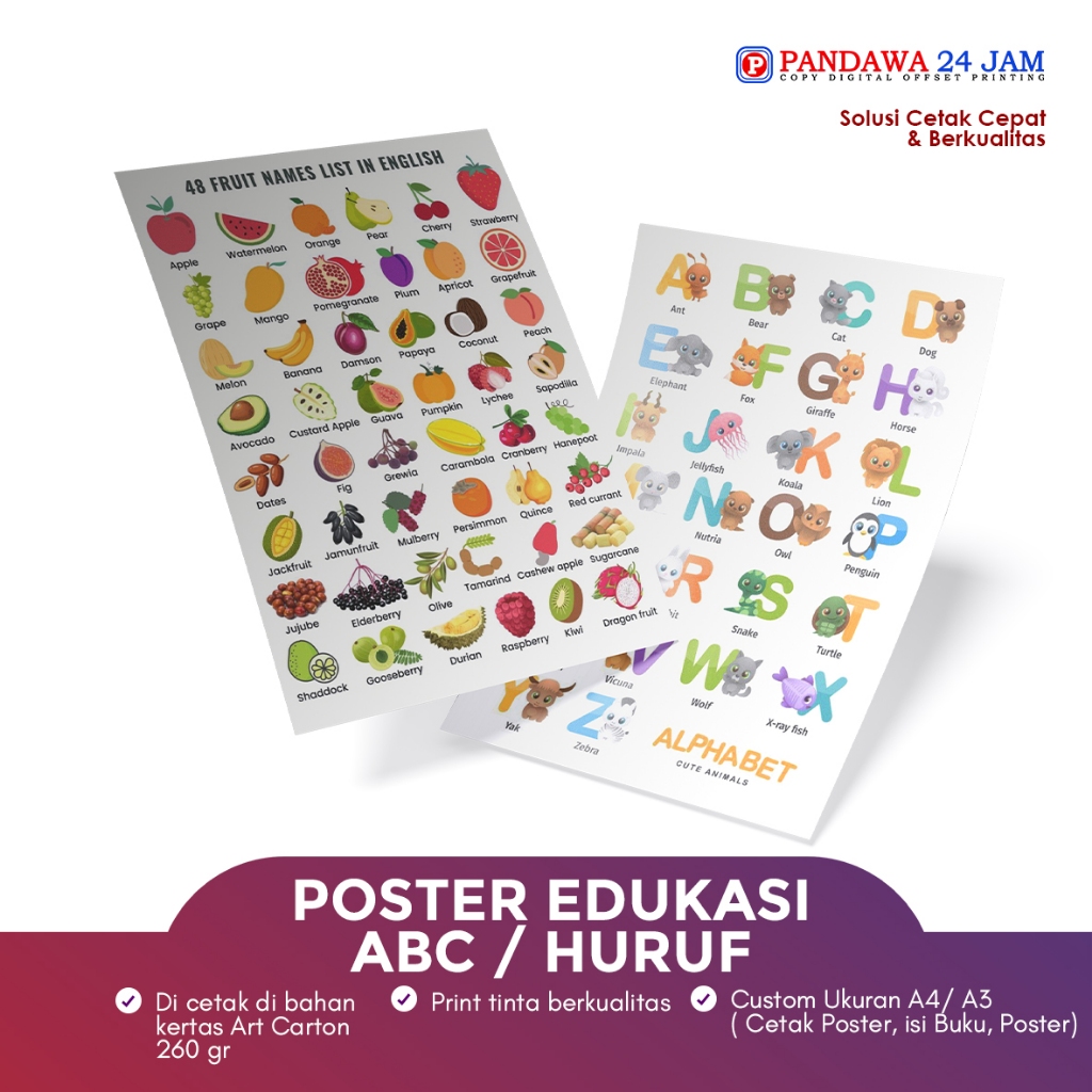 Poster Edukasi Anak Islami Lengkap SD Balita Bisa Custom Desain
