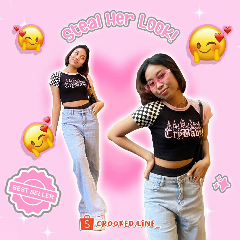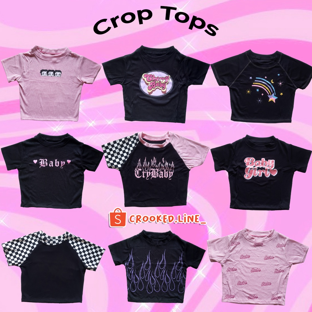 NEW Y2K CROP TOP TOPS TANK TOP TOPS KOREAN TOP BAJU CROP CROOKED LINE CROOKED.LINE_ BETTY BOOP PINK BETTY FLAME BABY