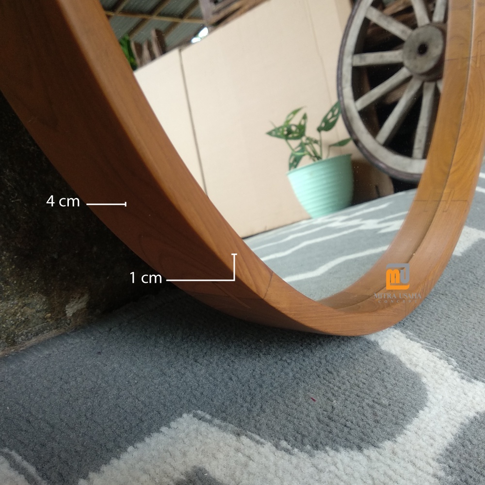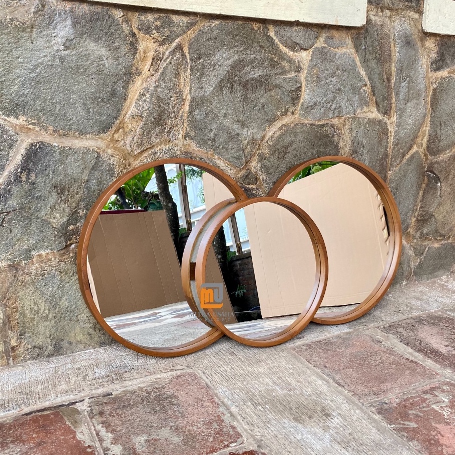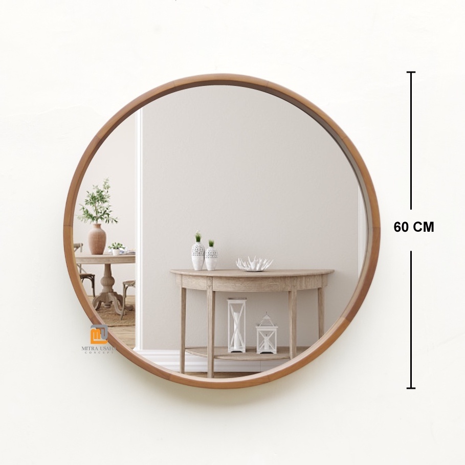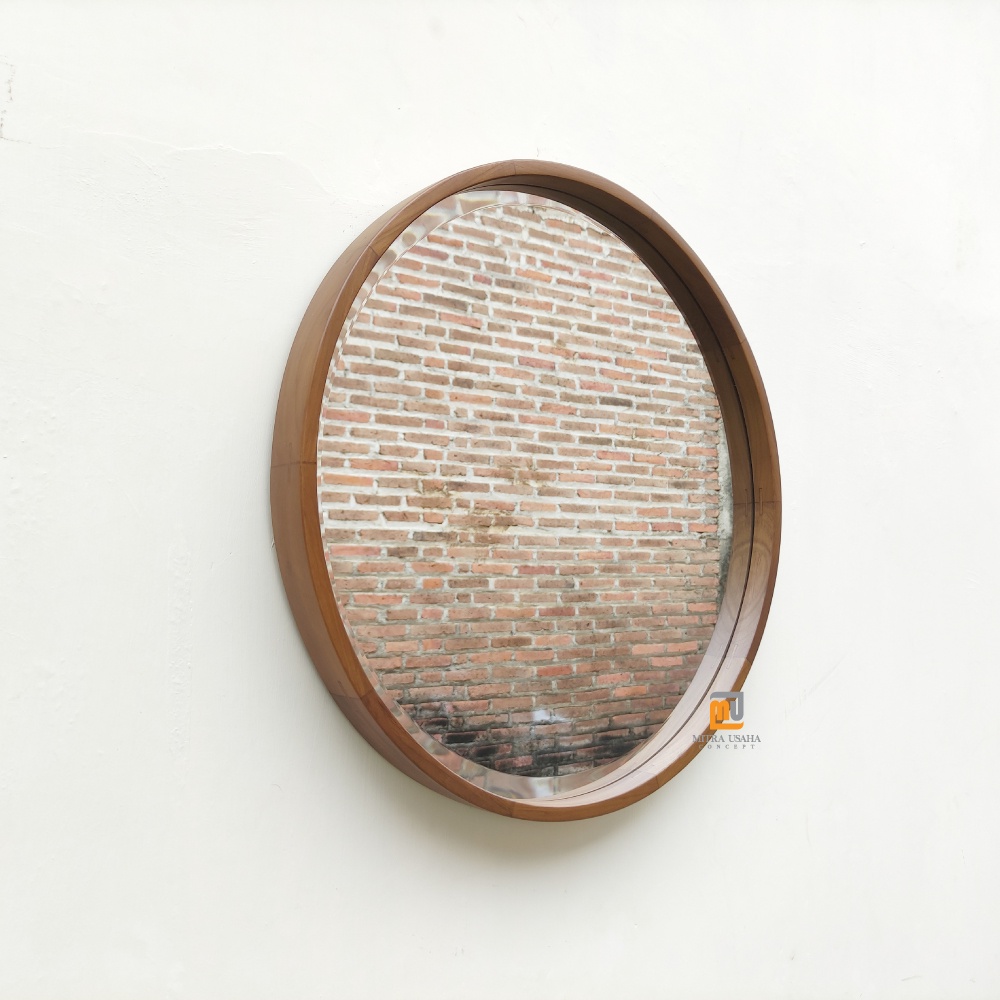 Cermin pigura Bulat 60cm - Pigura Kayu Jati - Mirror - Cermin kayu dinding - Round mirror - Pigura bulat jati - Cermin dekorasi rumah - Pigura mInimalis jati
