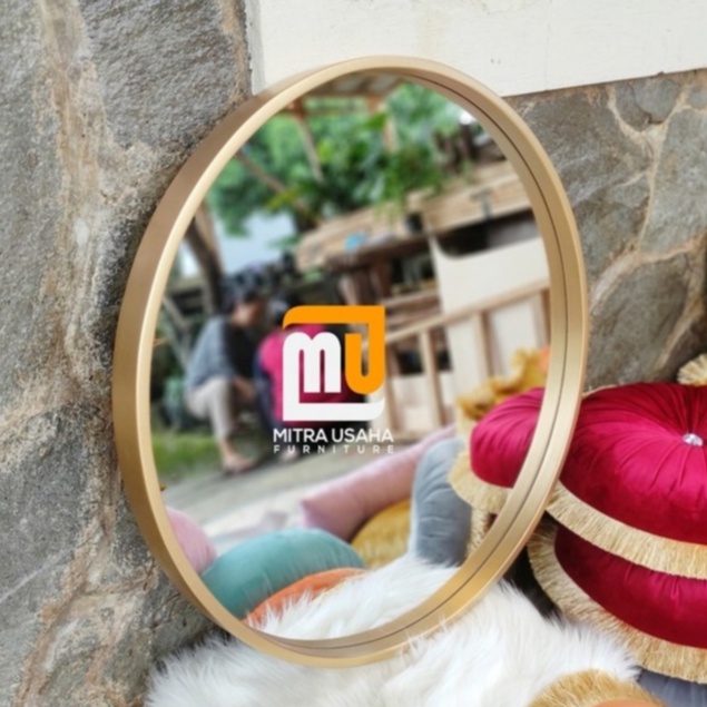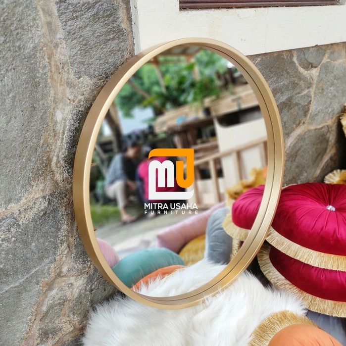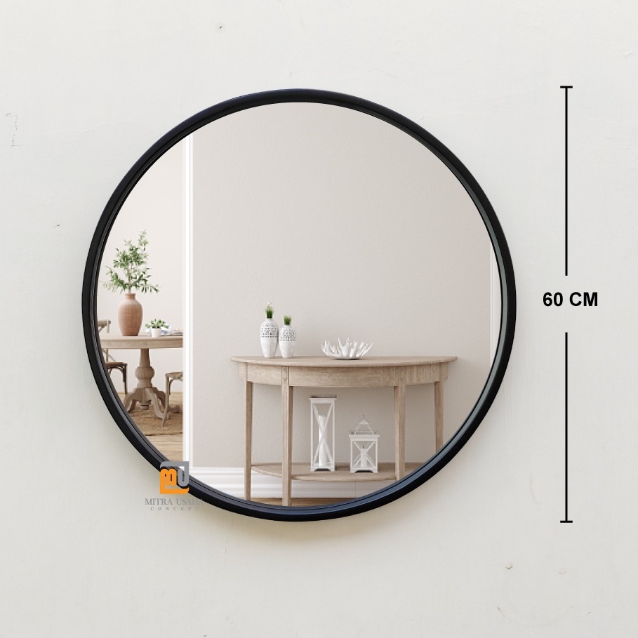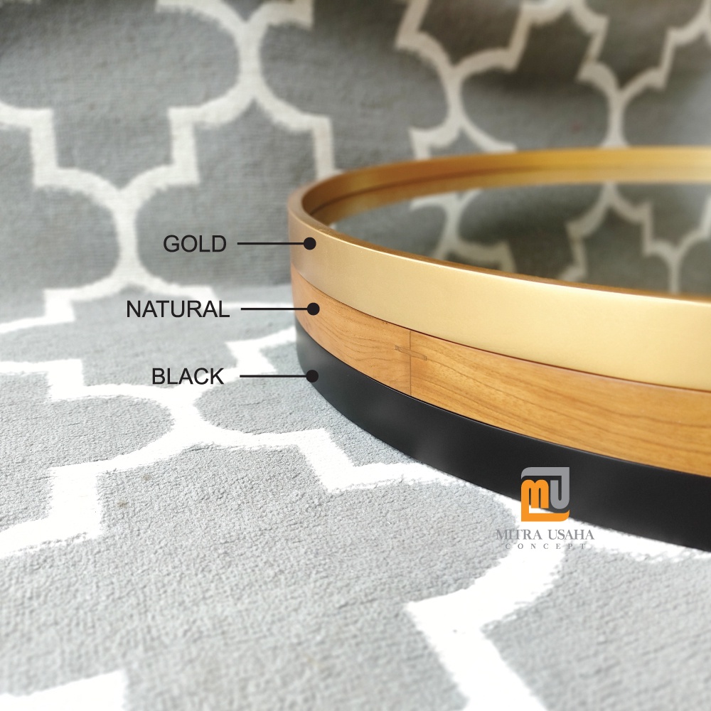 Cermin pigura Bulat 60cm - Pigura Kayu Jati - Mirror - Cermin kayu dinding - Round mirror - Pigura bulat jati - Cermin dekorasi rumah - Pigura mInimalis jati