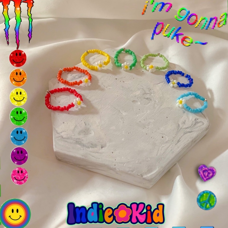 SHYTTER ORDINARY DAISY BEADS RINGS, cincin warna warni bunga, korean indie, paking kurah manik manik