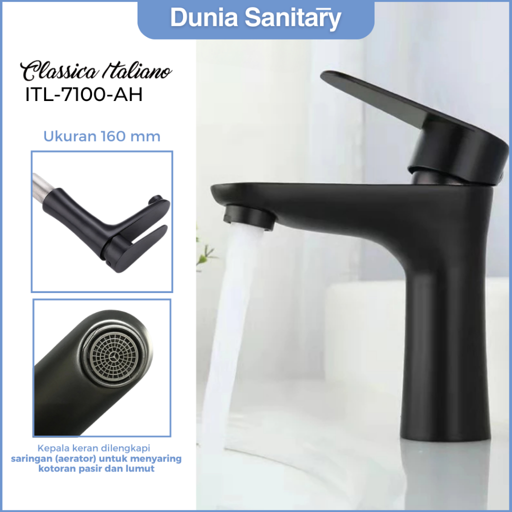 CLASSICA ITALIANO Kran Wastafel Cuci Tangan BLACK STAINLESS KUNINGAN MINIMALIST MODERN ITL-7100-AH