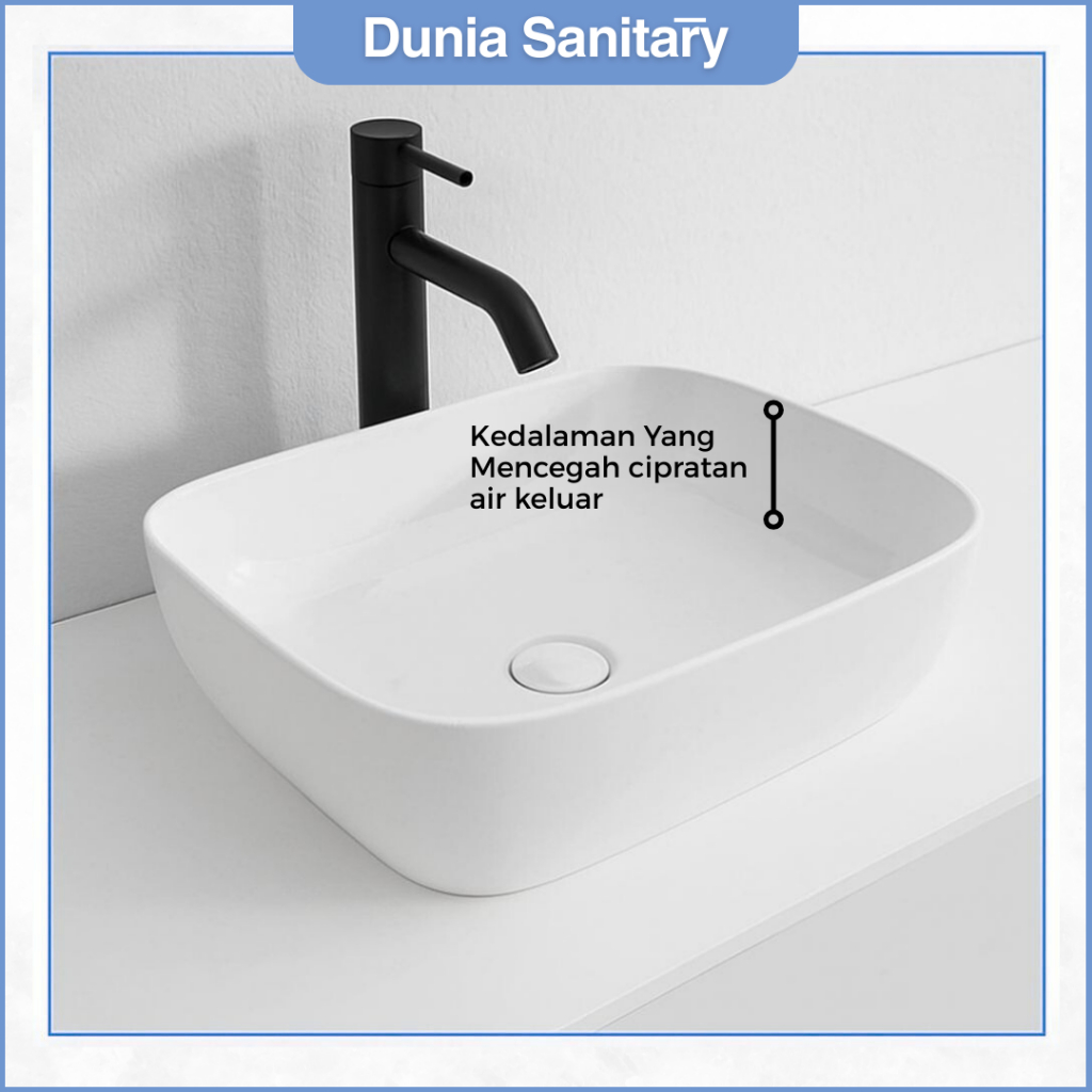 Wastafel Kamar Mandi Kotak TC-037-S | Keramik Mewah, Anti Noda, Elegan, Ukuran 400x310x140mm