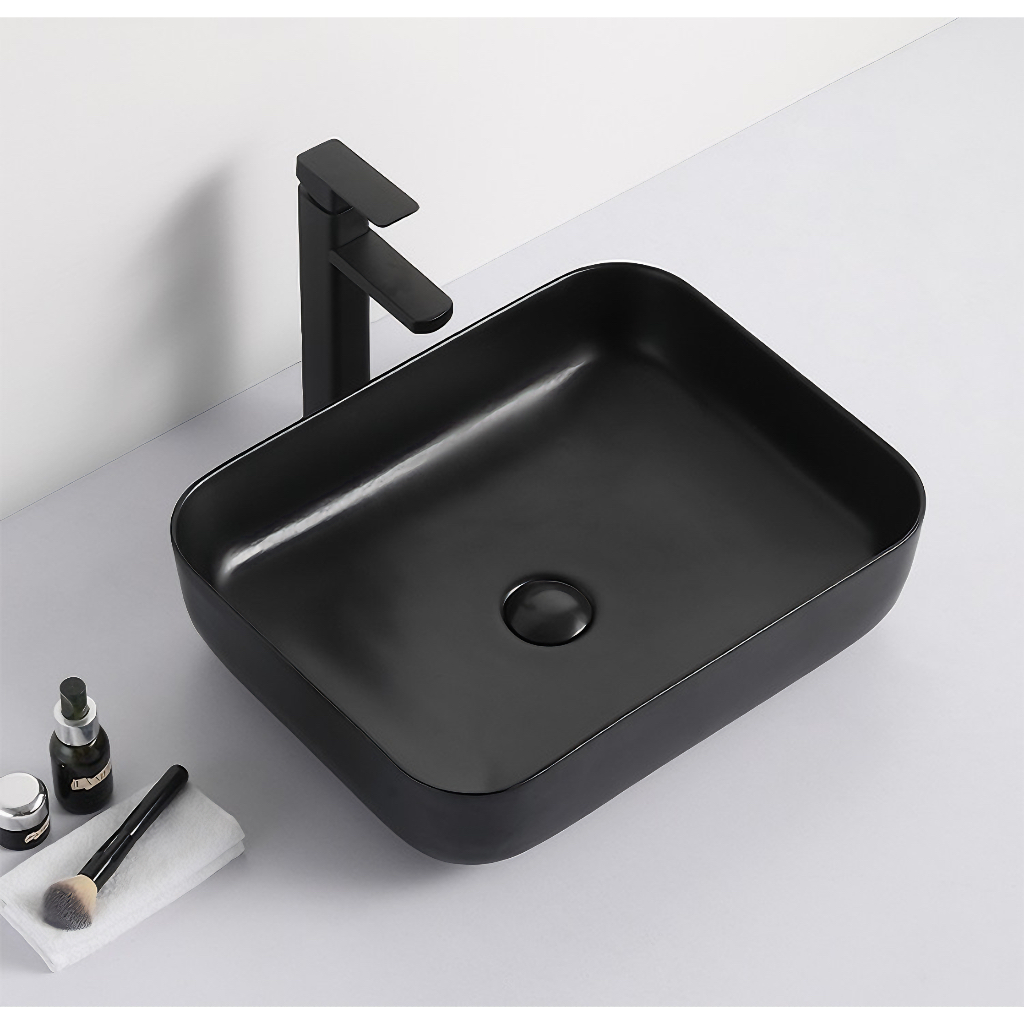 Wastafel meja Classica Italiano TC-037 keramik kotak hitam glossy mewah modern