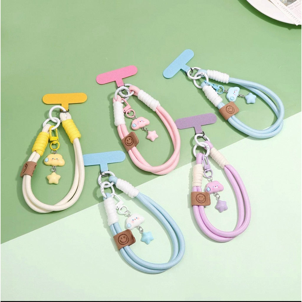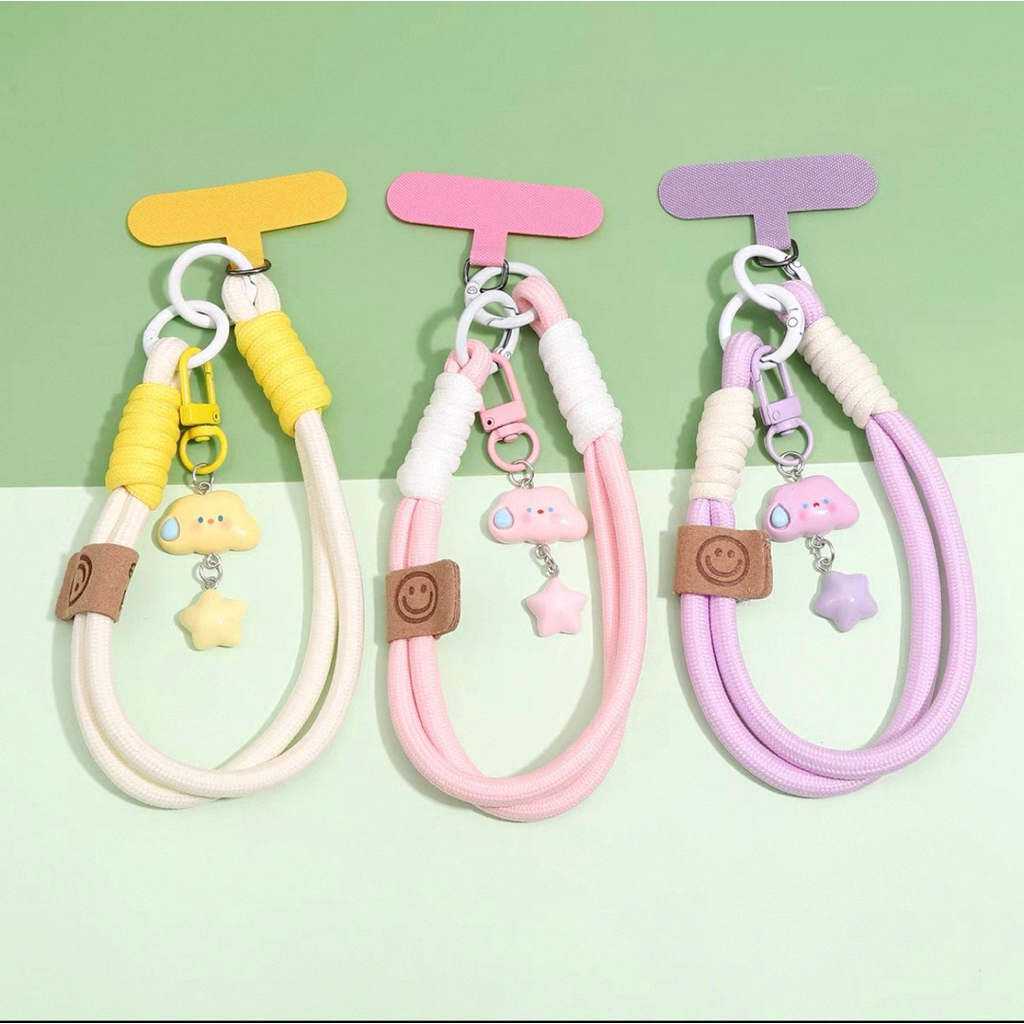 Gantungan Kunci / Tali Hp Macaron Liontin Bintang Awan / Rantai Gantung Casing Ponsel Lucu Universal