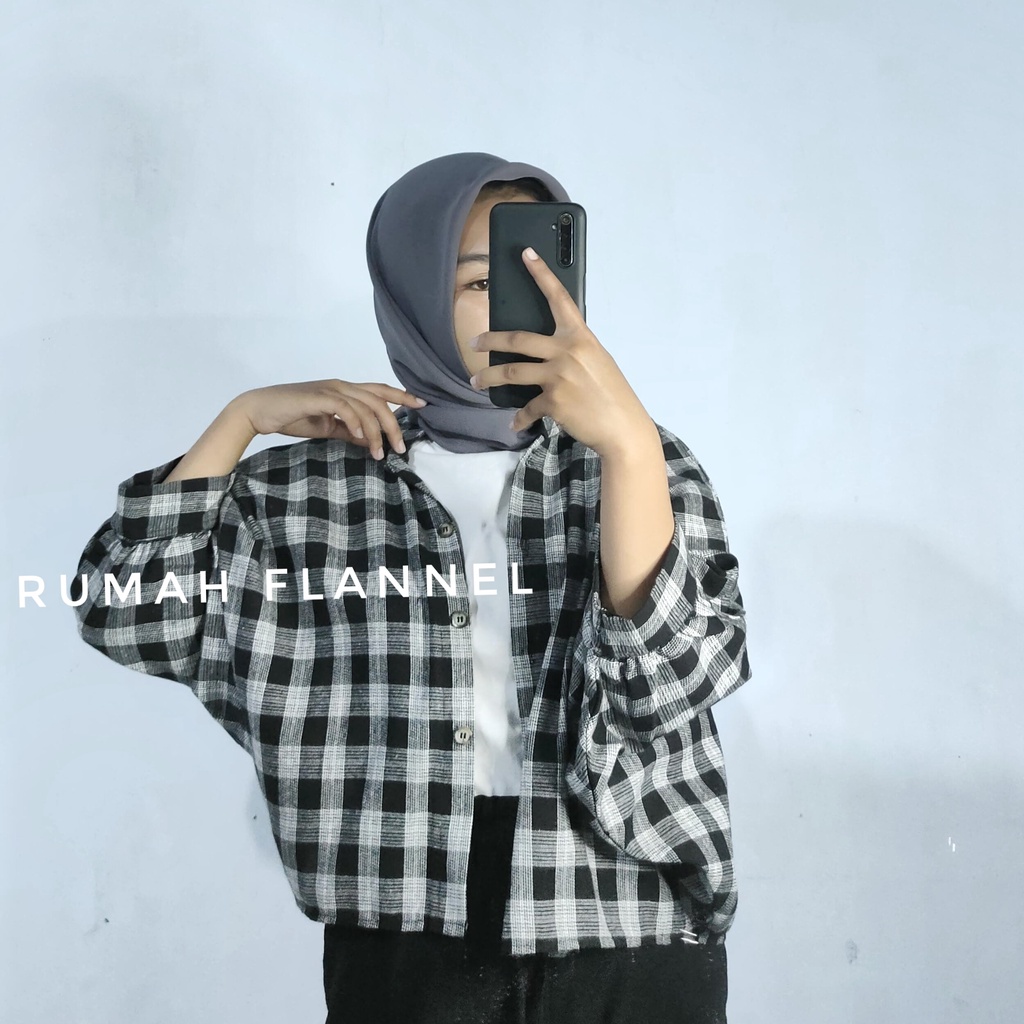 KEMEJA TAMARA BATWING FLANEL OUTER || KEMEJA KOTAK WANITA OVERSIZE || ATASAN TARTAN CROP LENGAN BALON