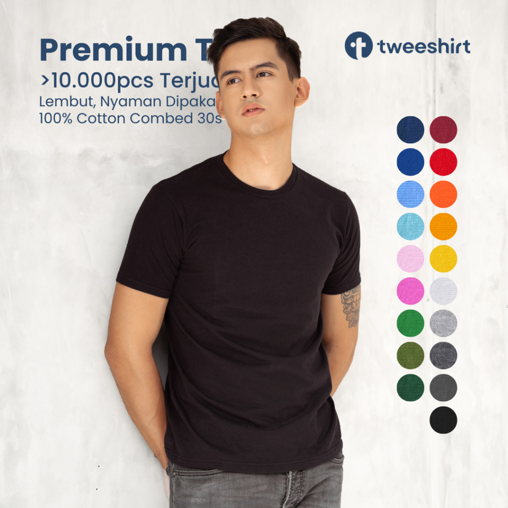 Kaos Polos Cotton Combed 30s Lengan Pendek Tanpa Jahitan Samping Yarn Spindle Eco Soft