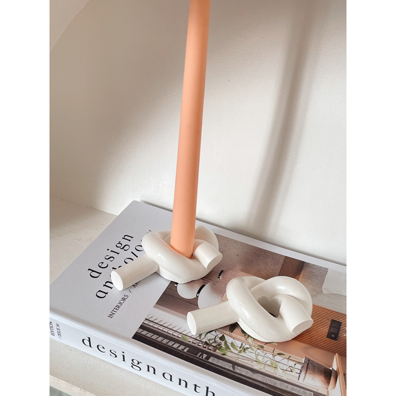 Rope Knot Concrete Taper Candle Holder / Tempat Lilin Semen / Properti Foto / Tatakan Lilin / Art object