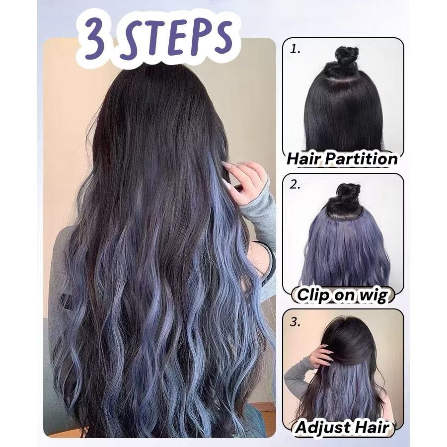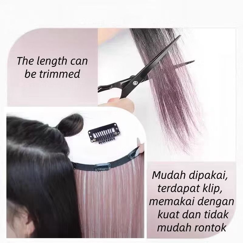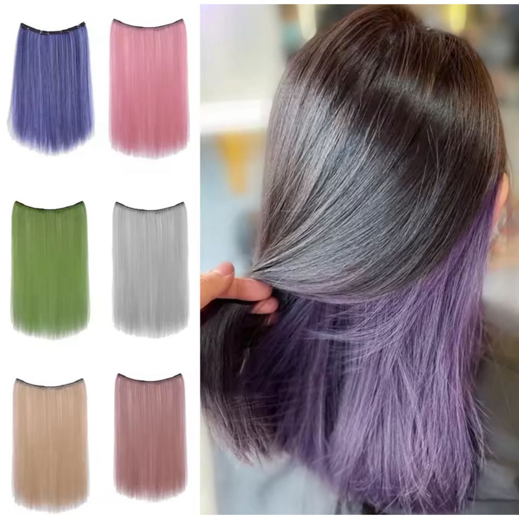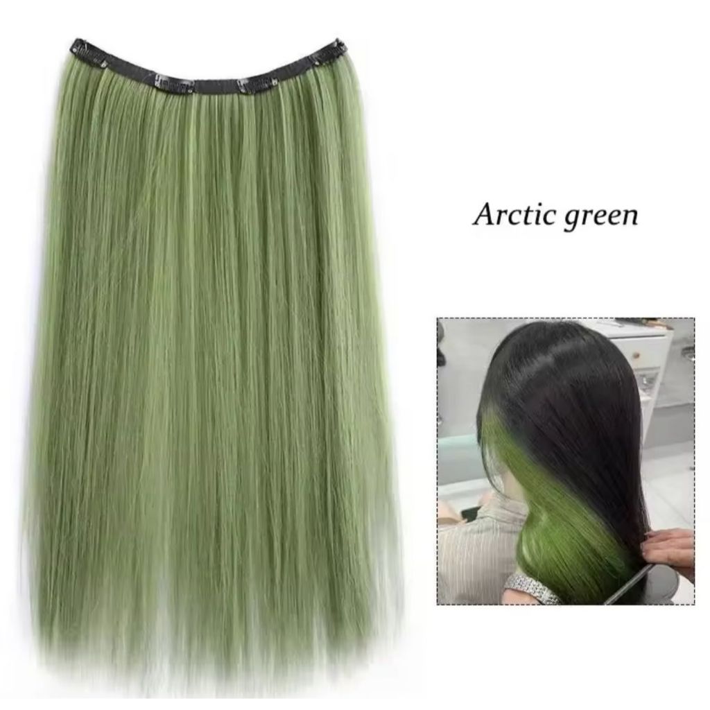 RCS ✅wig rambut ombre keriting lurus hairclip warna merah hijau pink