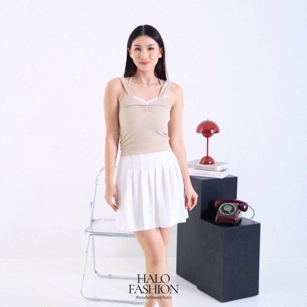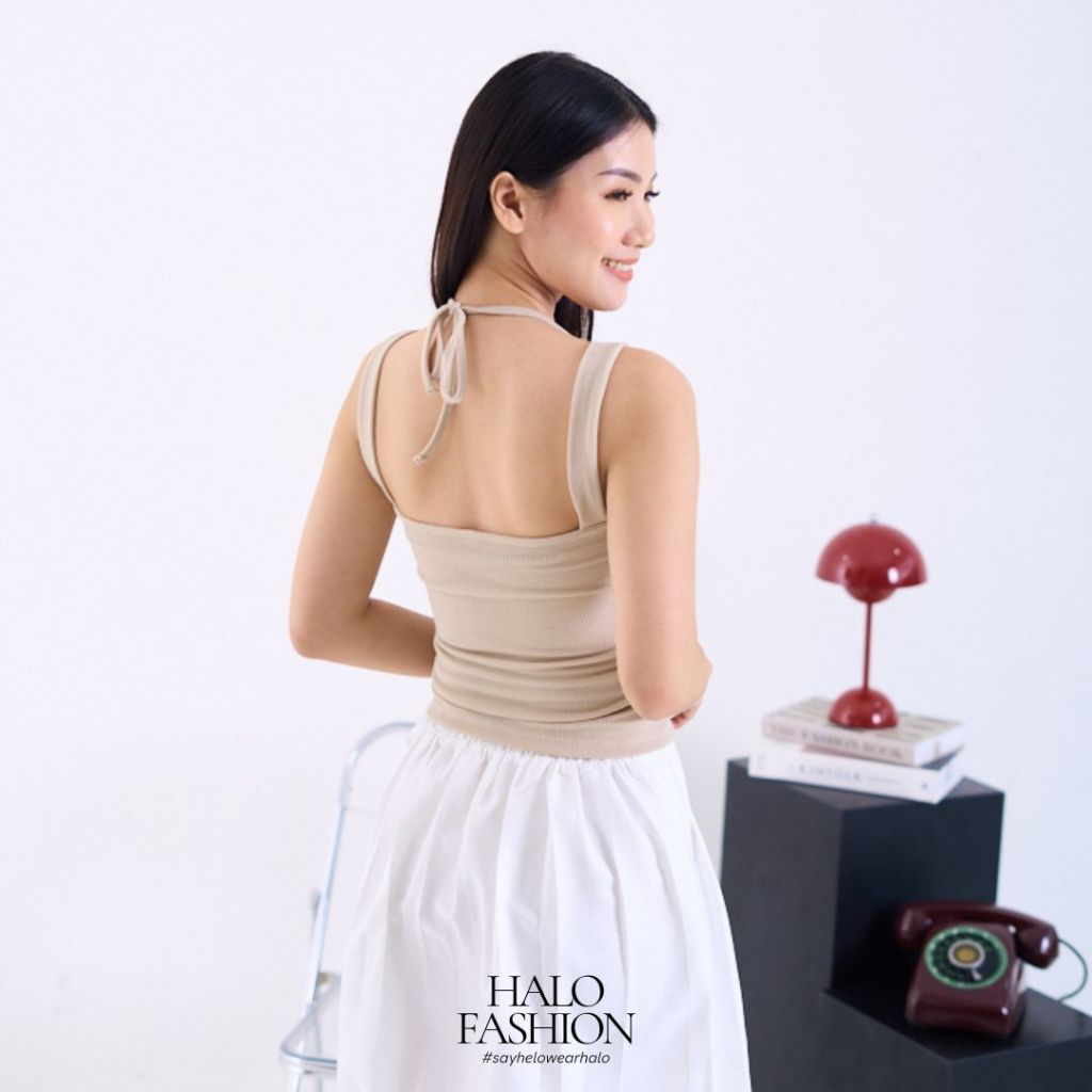 [HaloFashion] Gisel Atasan Wanita Knit Sleeveless Crop Top Korean Style