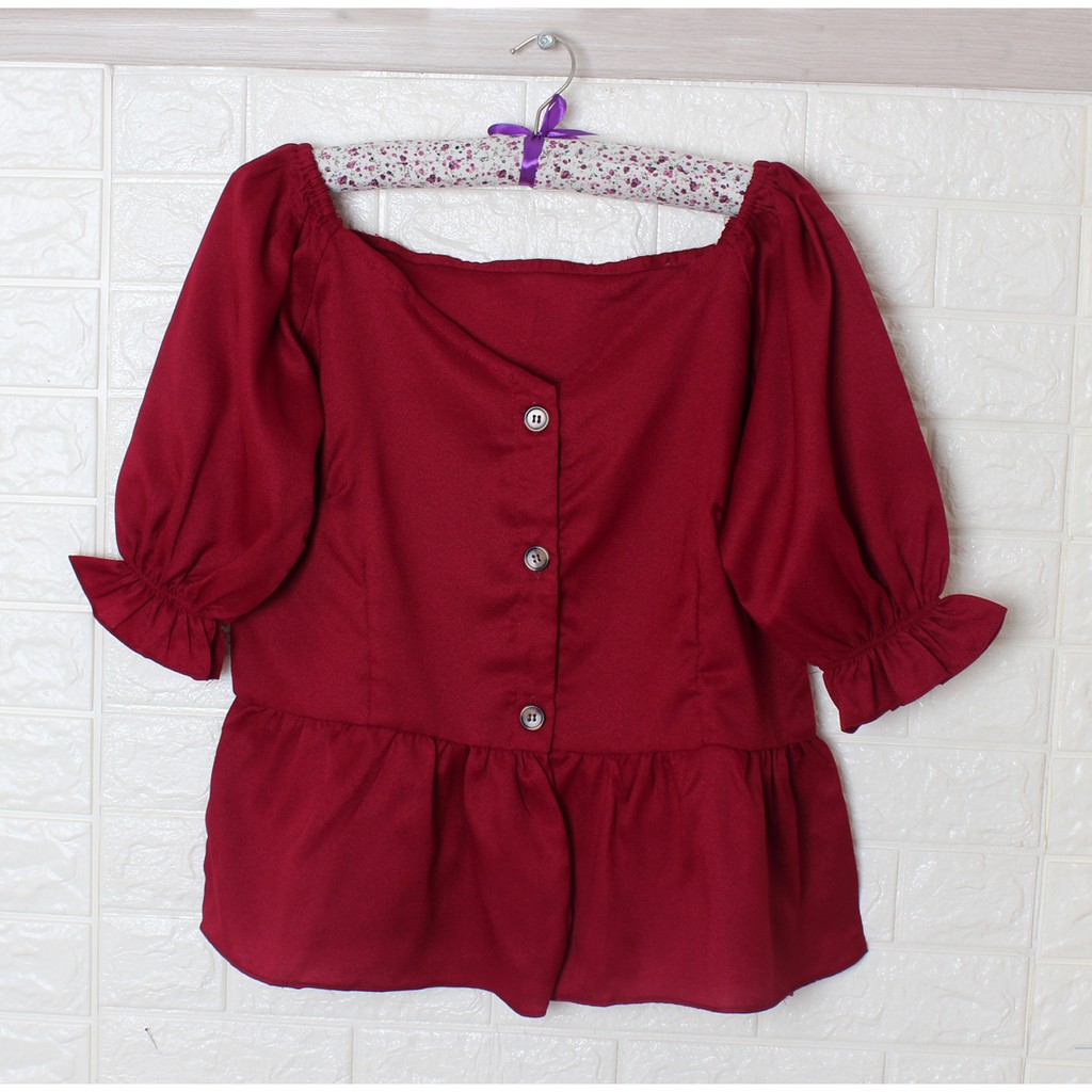 TGO - Baju Sabrina Lengan Karet 3/4 Blouse Crop Evelyn Kancing Depan Realpict