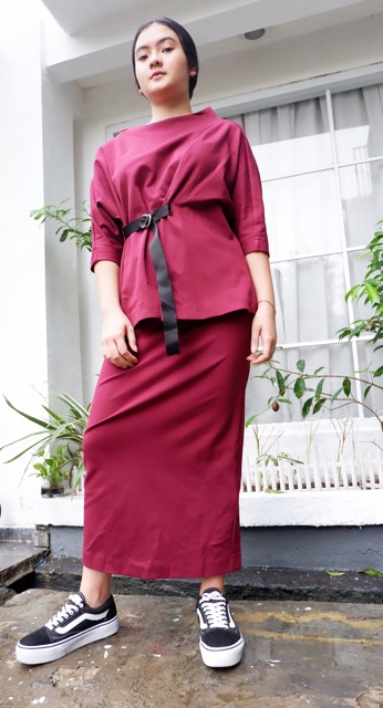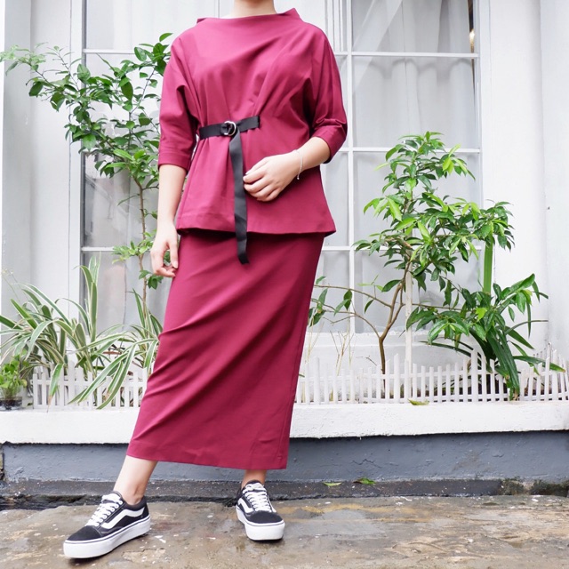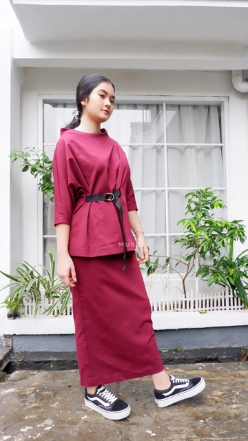 maroon set rok and blouse