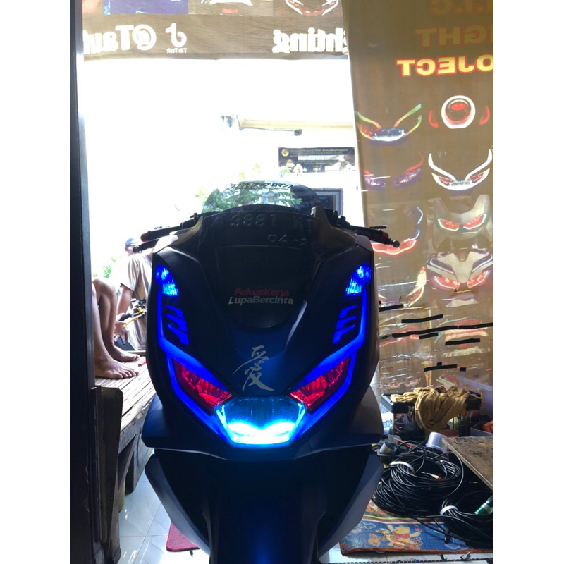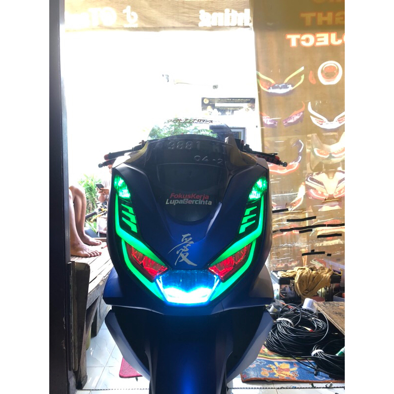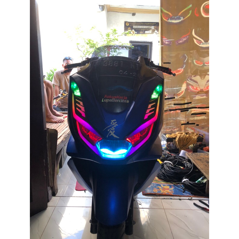 PAKET LAMPU ALIS RGB REMOT PCX 160 SET HEADLMAP ORIGINAL PNP TINGGAL PASANG+saklar