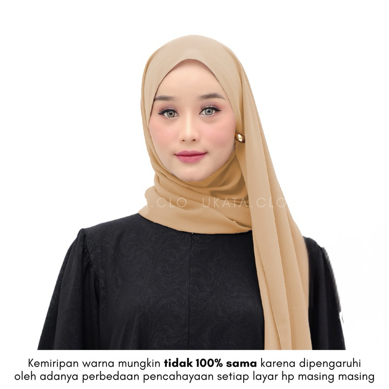 UKATA - Pashmina Ceruty Babydoll 200x75 cm Jahit Tepi Hijab Jumbo Syari