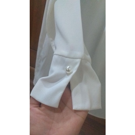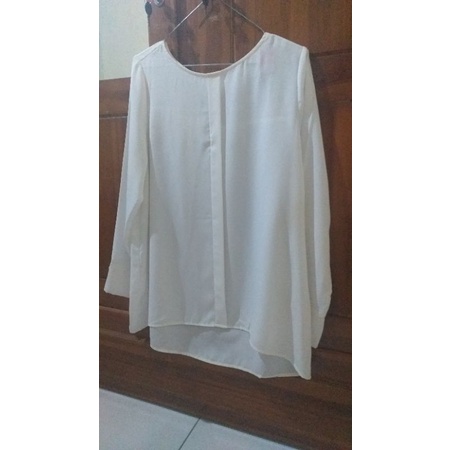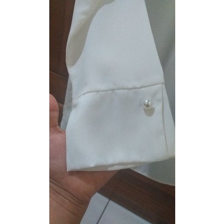 (Cuci gudang baju import) barang lelang kemeja wanita lengan panjang warna broken white putih tulang kemeja hem korea