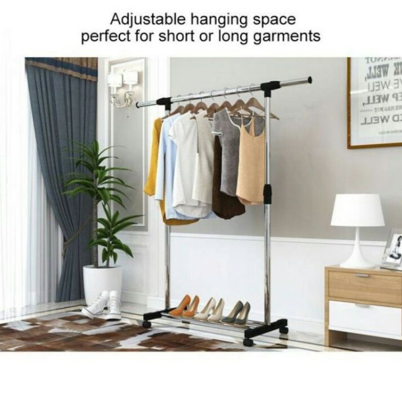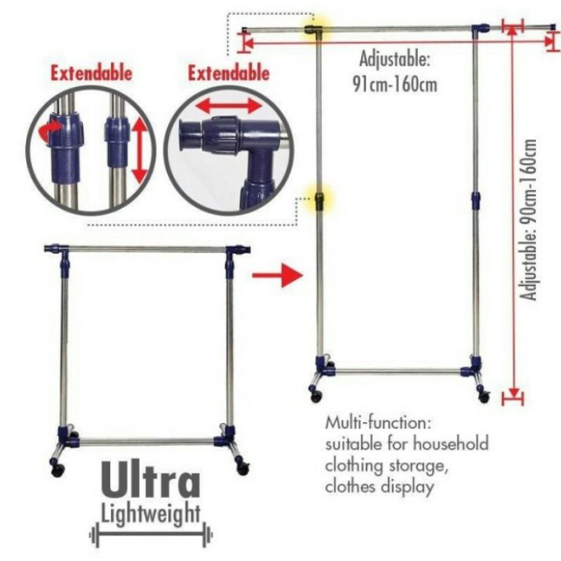 Stand Hanger Single Rak Serbaguna dengan Roda