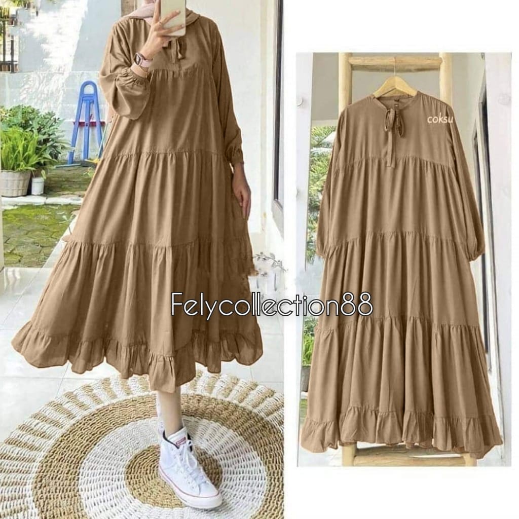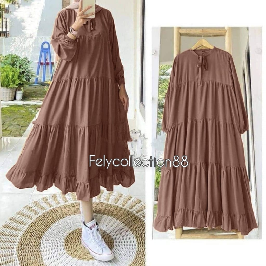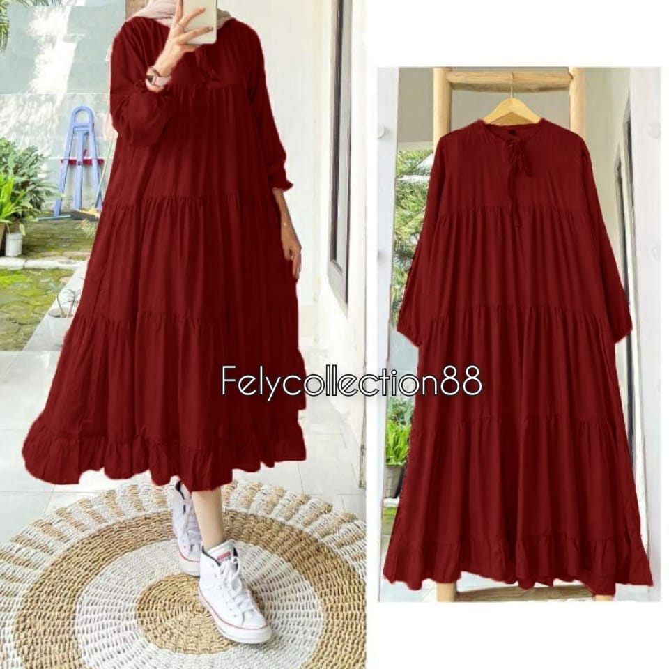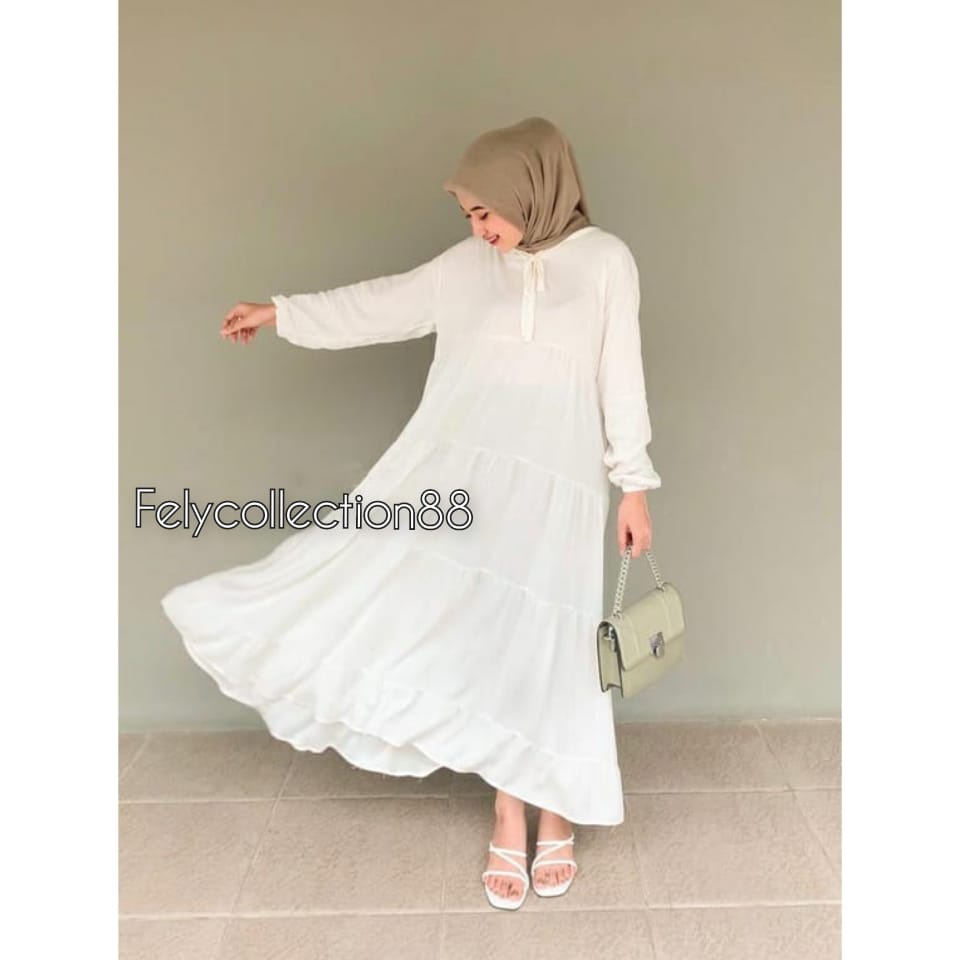 Rachel Midi Dress Busui Friendly // Gamis Wanita Terbaru Kekinian // Fashion Muslim // Bahan Katun micro
