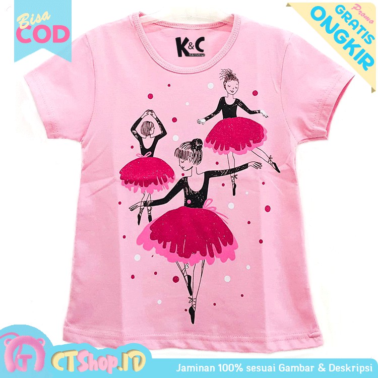 CTShopID Baju Anak / Kaos Anak Perempuan Motif Balerina Pink 1-10 Tahun