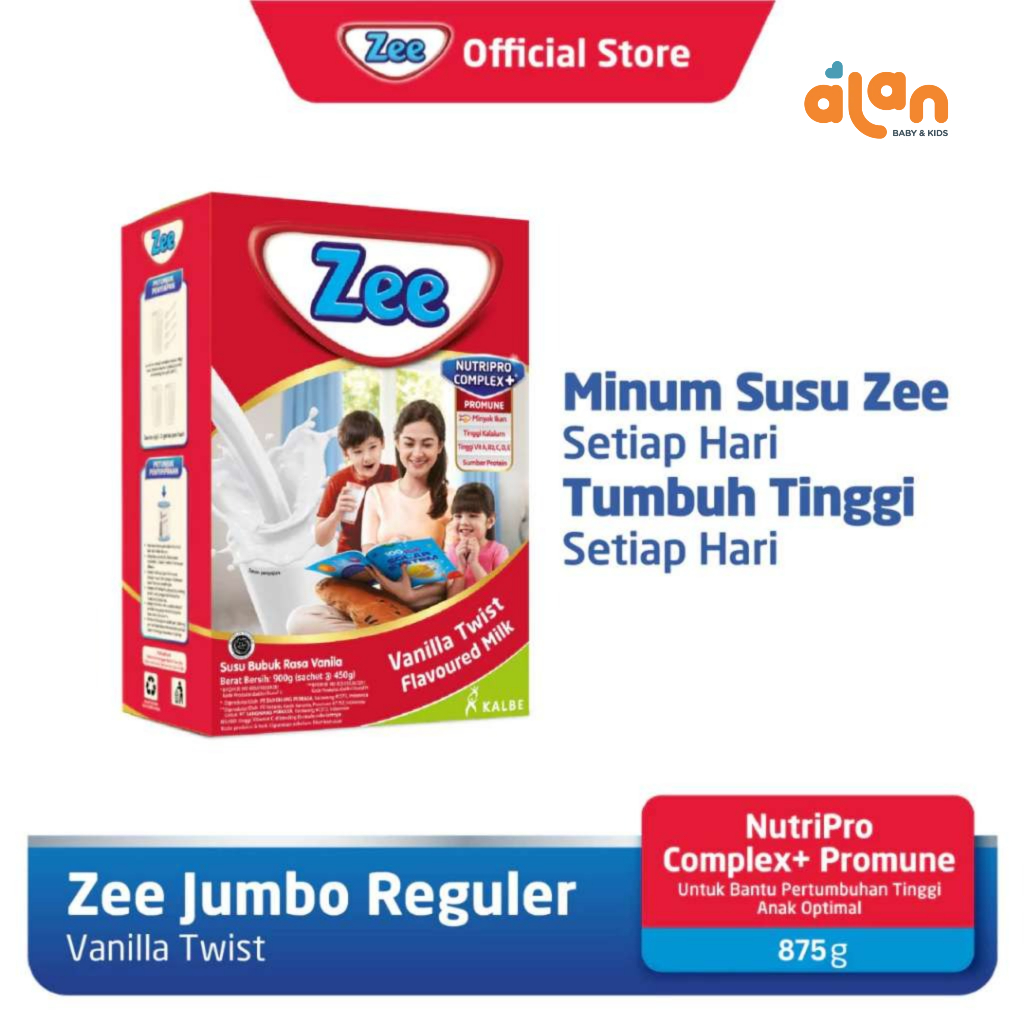 Zee Reguler Jumbo Vanilla Twist Milk 875gr Untuk Anak 3-12 Tahun