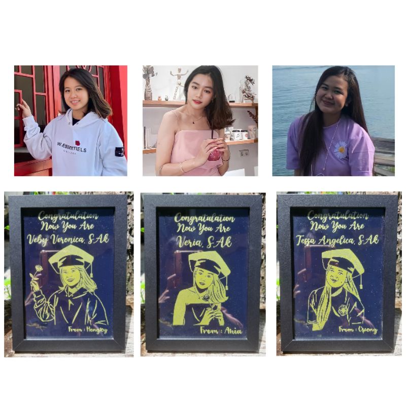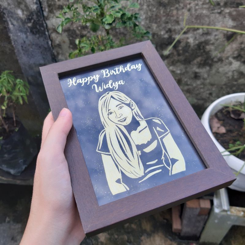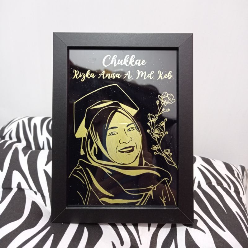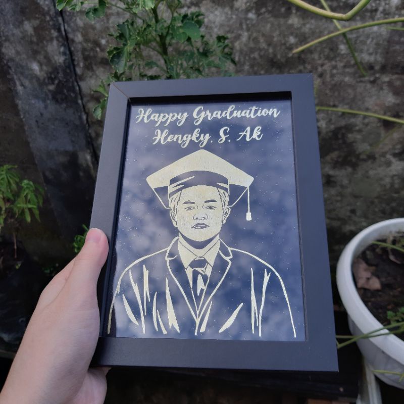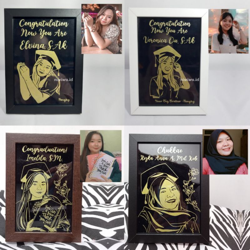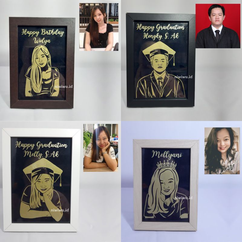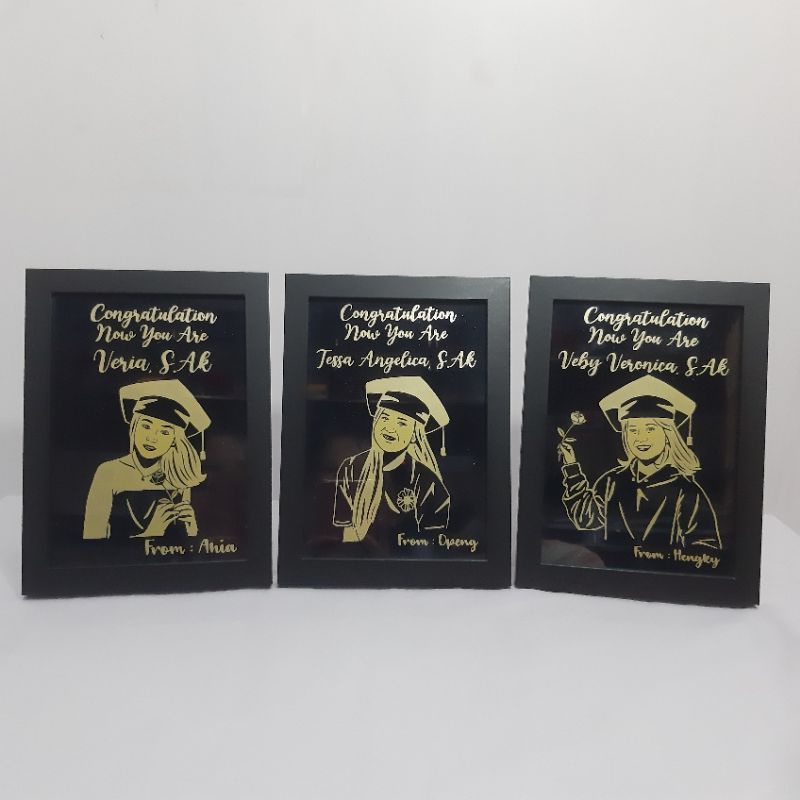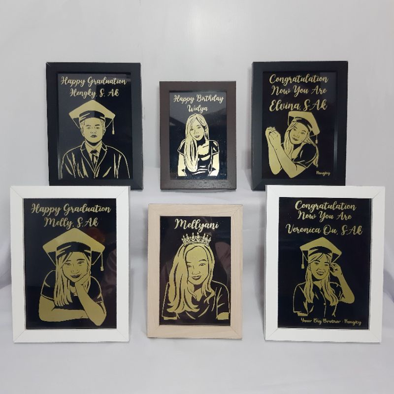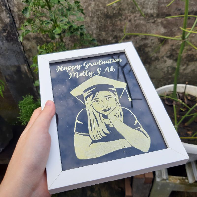 Gold Siluet In Frame / Bingkai Unik Custom Ucapan Selamat Nama glitter rustic aesthetic Gambar wisuda graduation wedding birthday valentine / kado hadiah unik aesthetic lucu akrilik custom