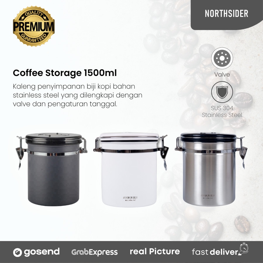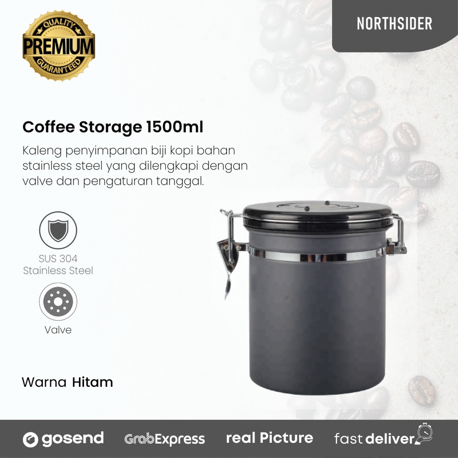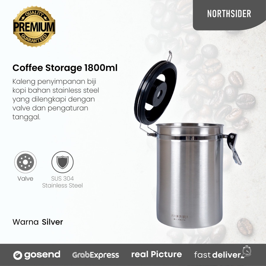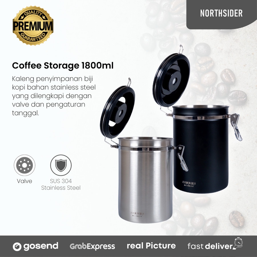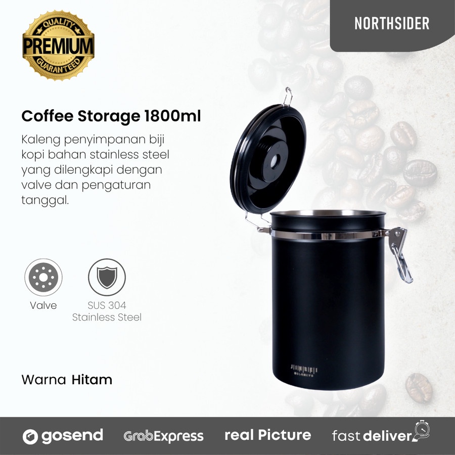 Coffee storage with valve + date 1800ml - toples kopi kedap udara
