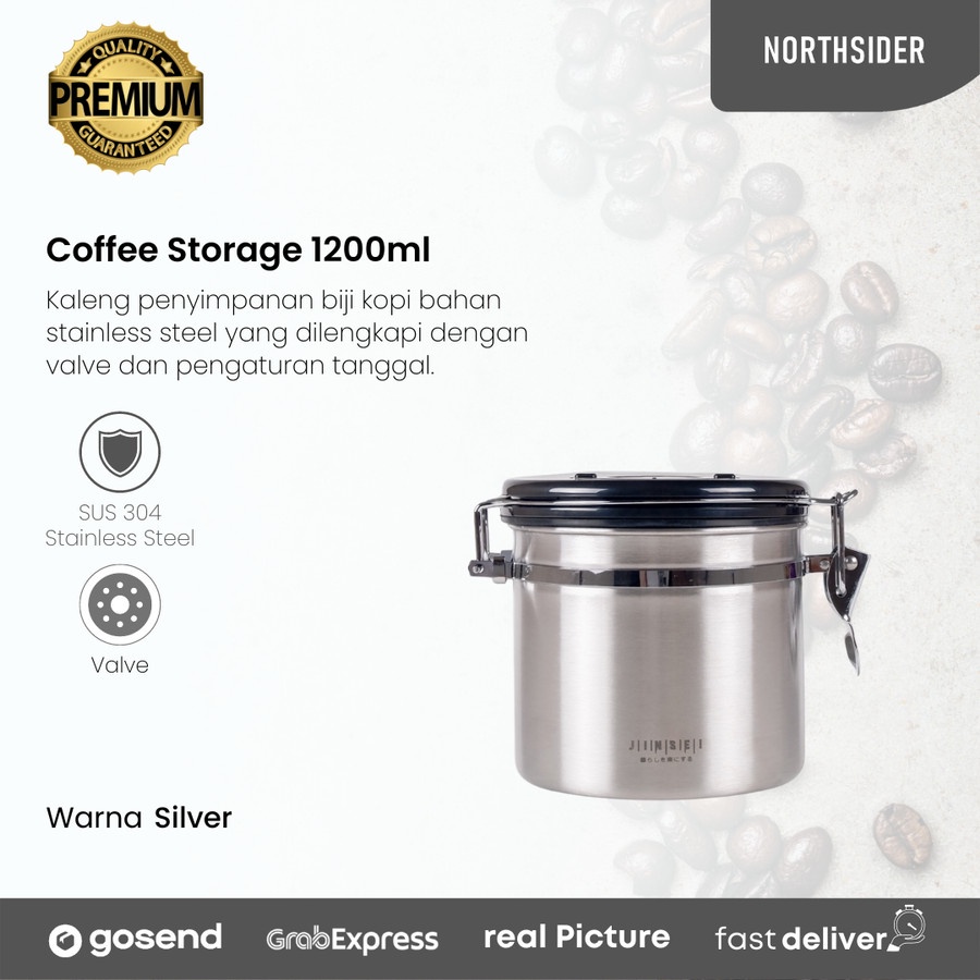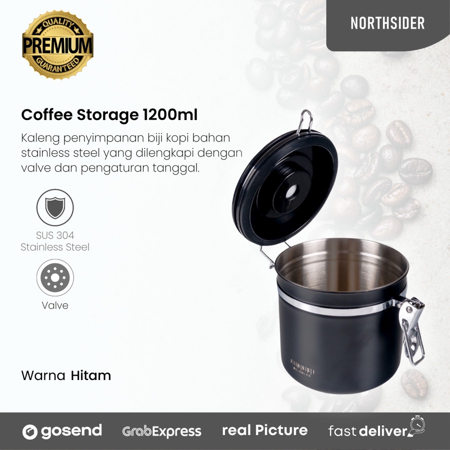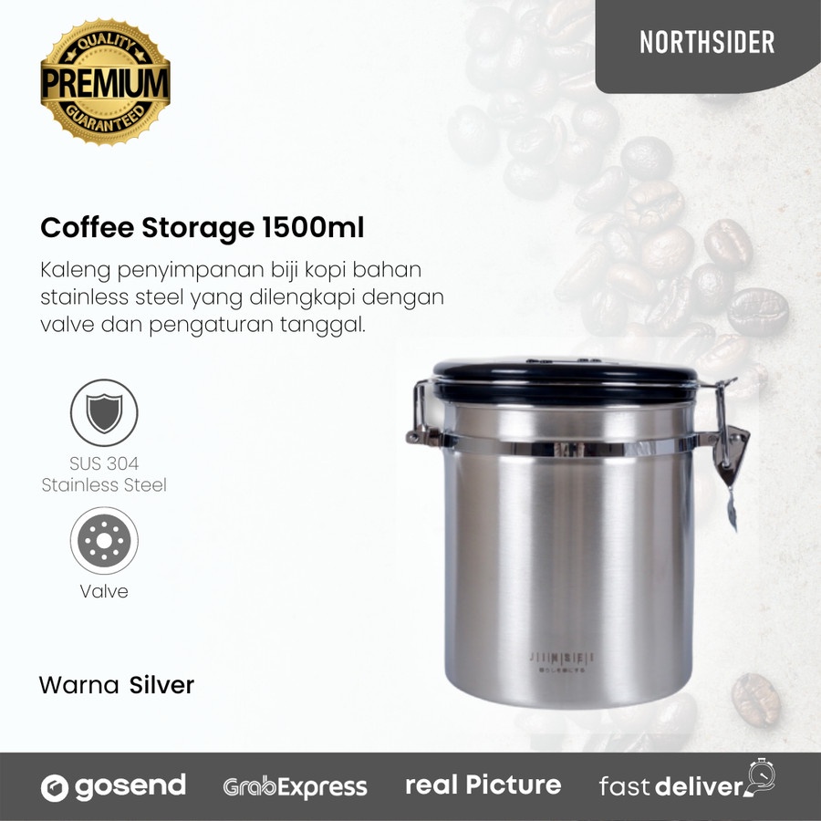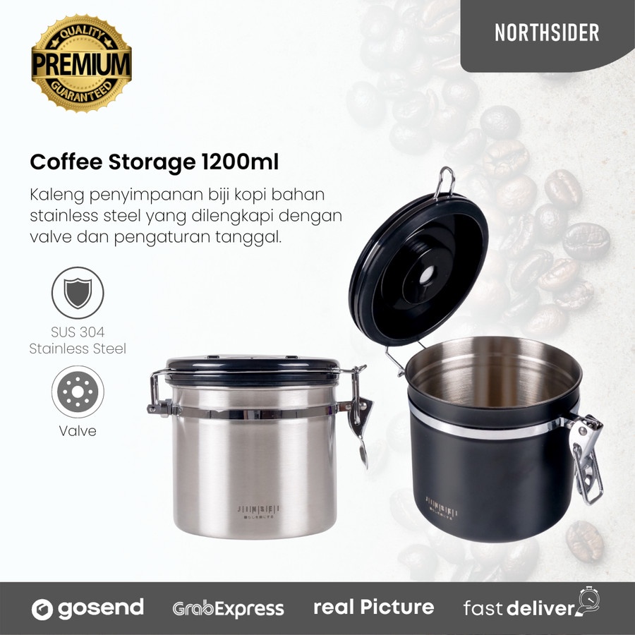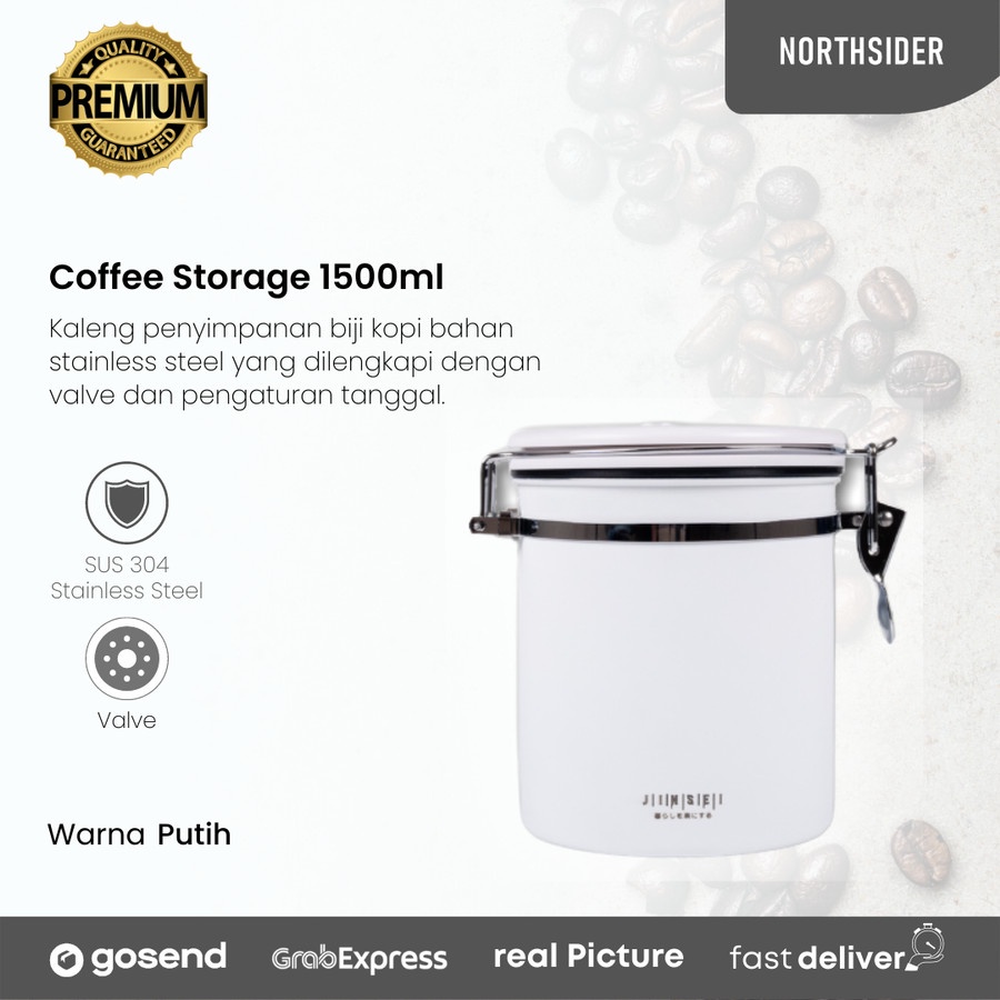 Coffee storage with valve + date 1800ml - toples kopi kedap udara