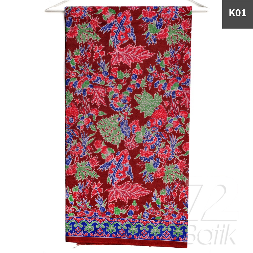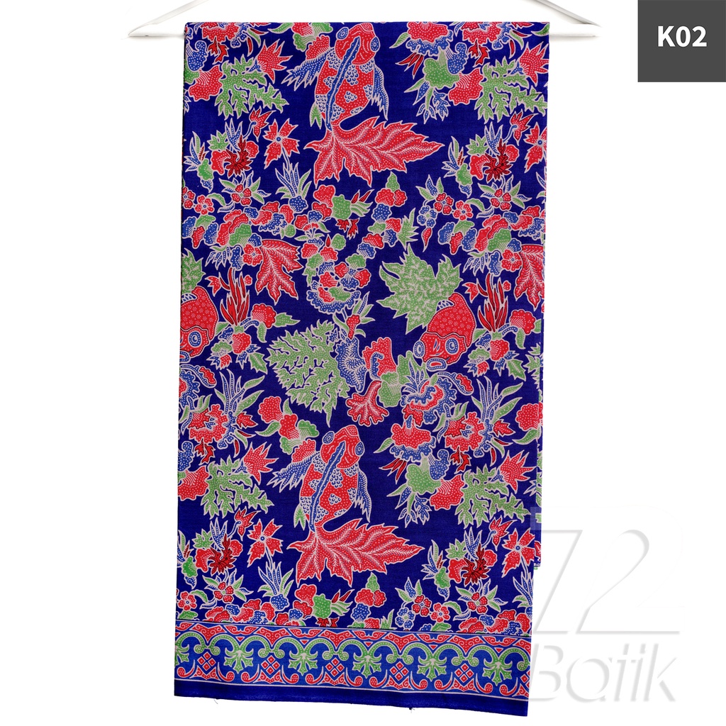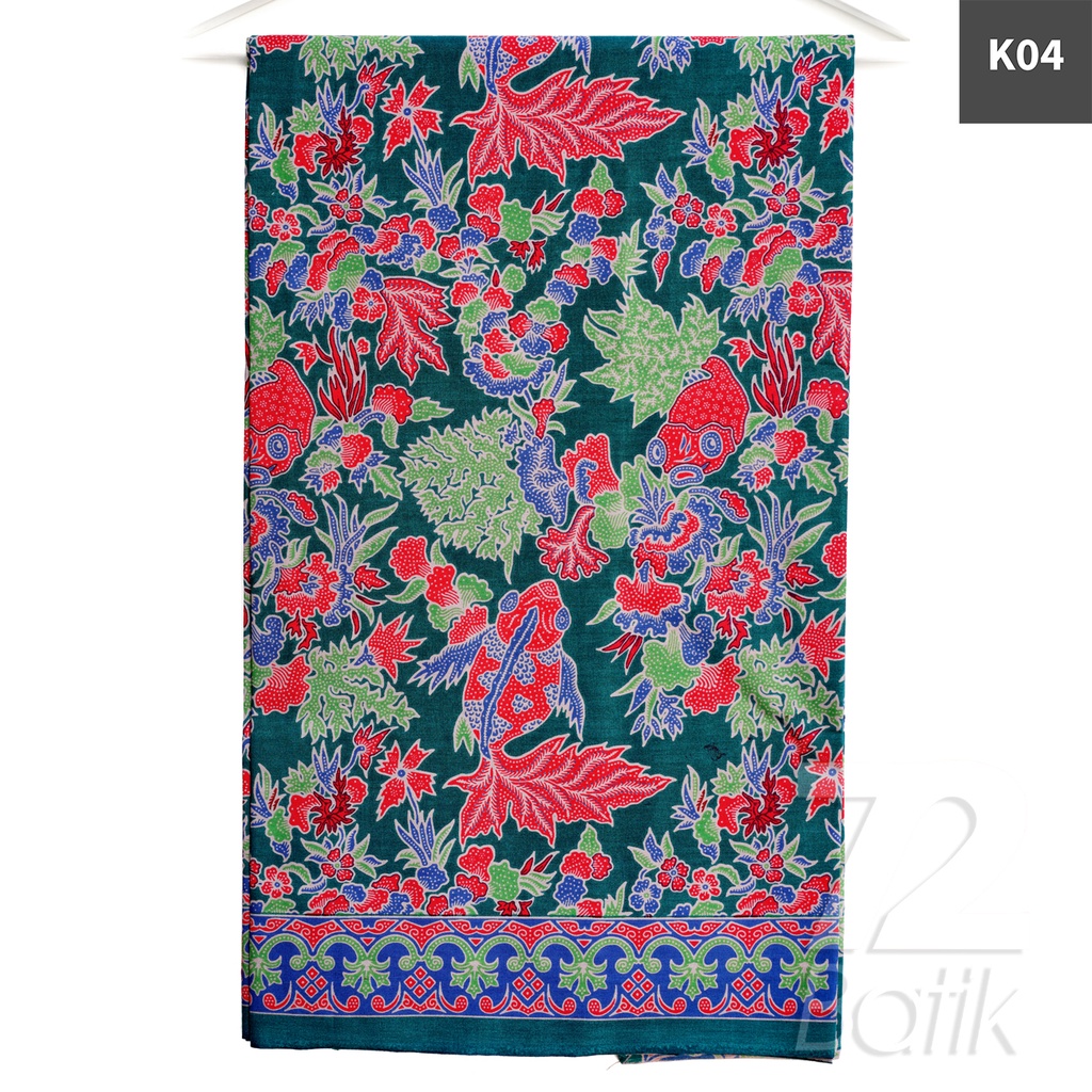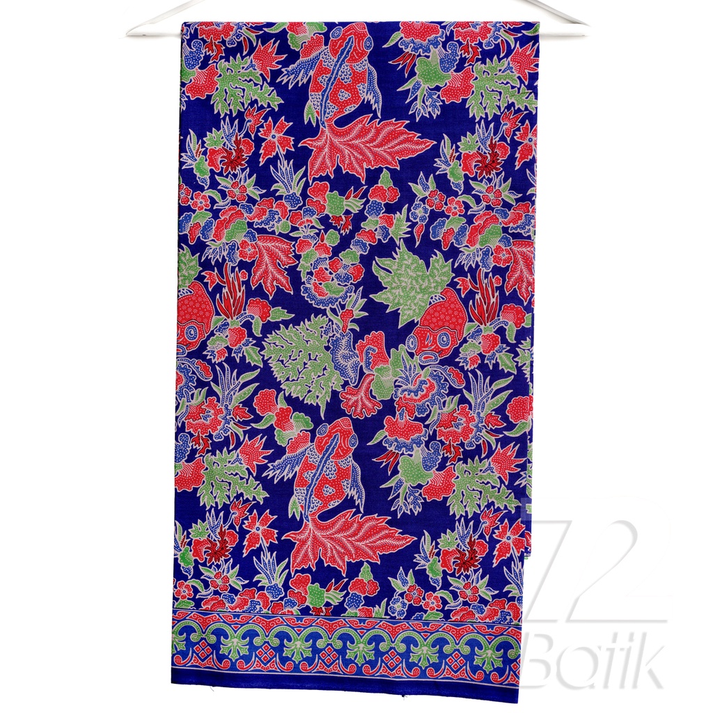KAIN BATIK PREMIUM Bahan Katun Motif Ikan Koi Warna Biru Hijau Nila 724394 Cap 72 Jarik Jarit Samping Kebat Panjang Batik Katun Modern Premium Bahan Seragam Batik Pernikahan Kantor Keluarga Murah Kamen Jadi Batik Bali Lembaran