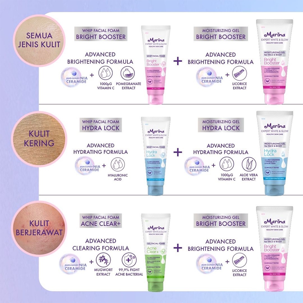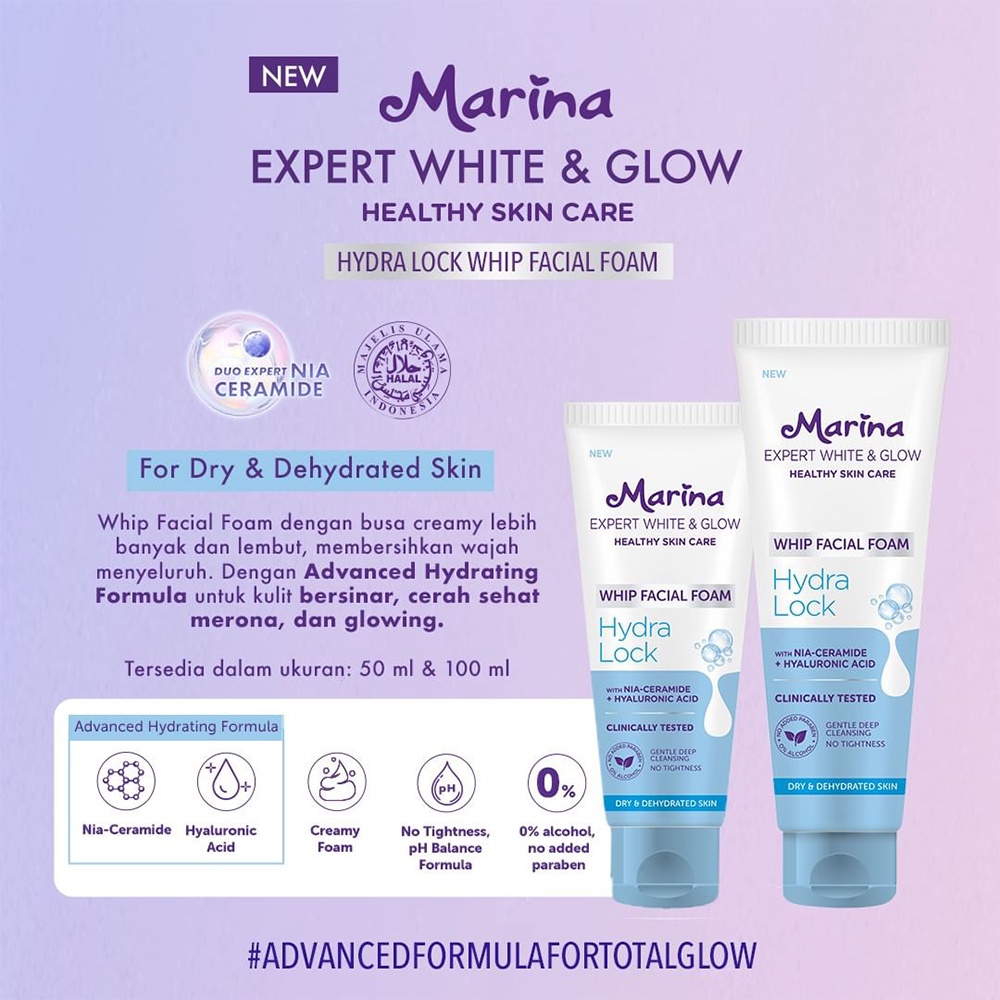❤ Under100 ❤ MARINA Expert White & Glow Whip Facial Foam | Gel Facial Foam | Moisturizer Gel for Face & Body | BPOM