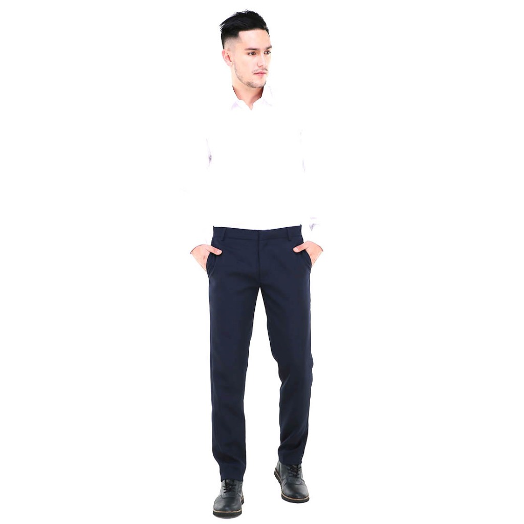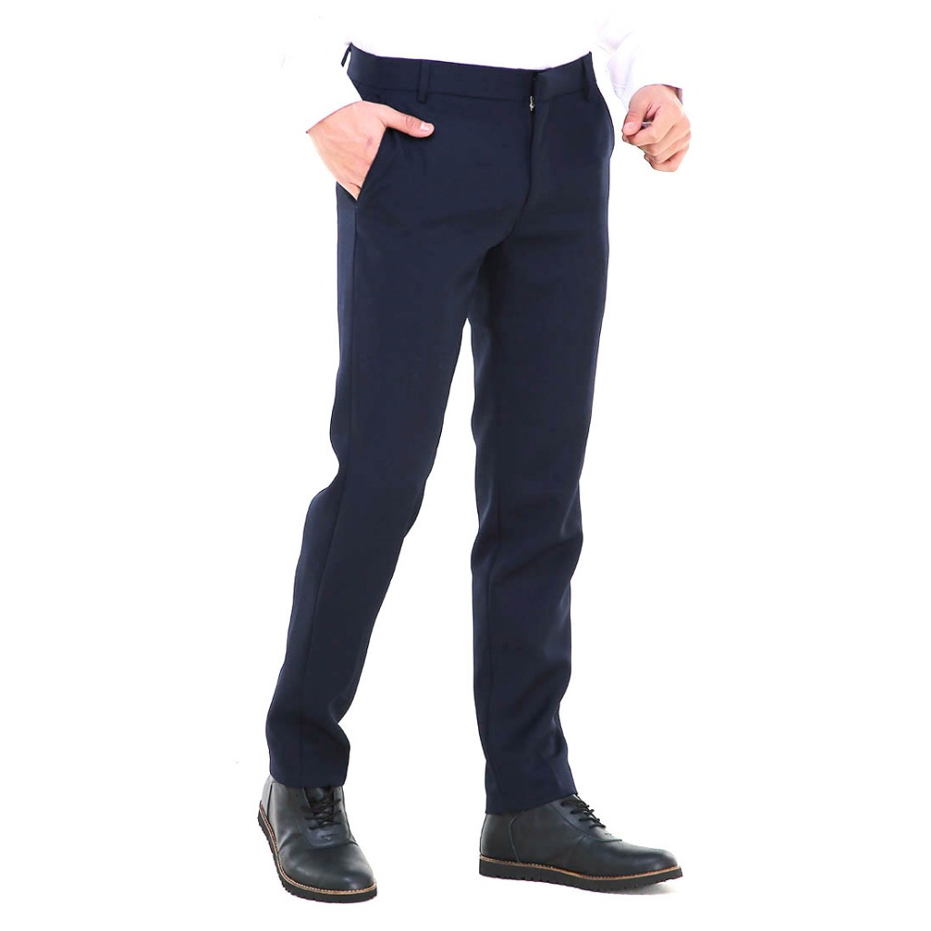 Hamlin Locko Celana Panjang Pria Polos Slim Fit Formal Long Plain Pants Material Wool - Dark Blue