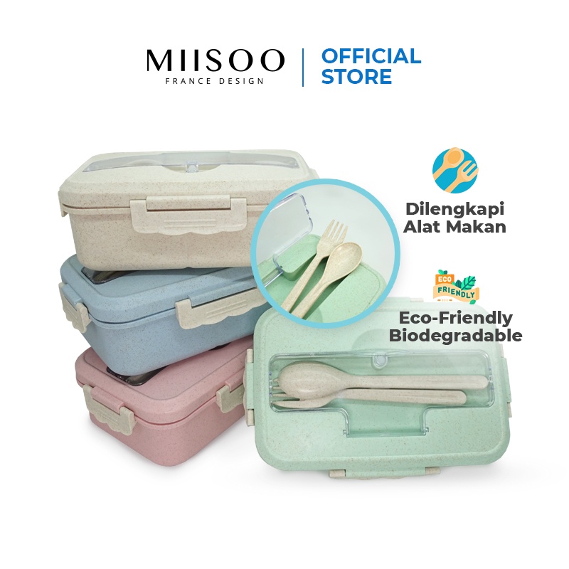 Miisoo Lunch Box Set Kotak Bekal Makan Jerami Gandum kotak makan Anti Tumpah Free Sendok dan Garpu-live