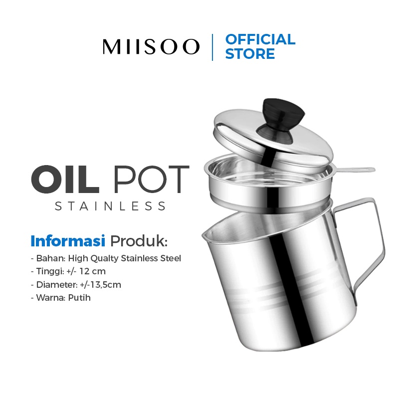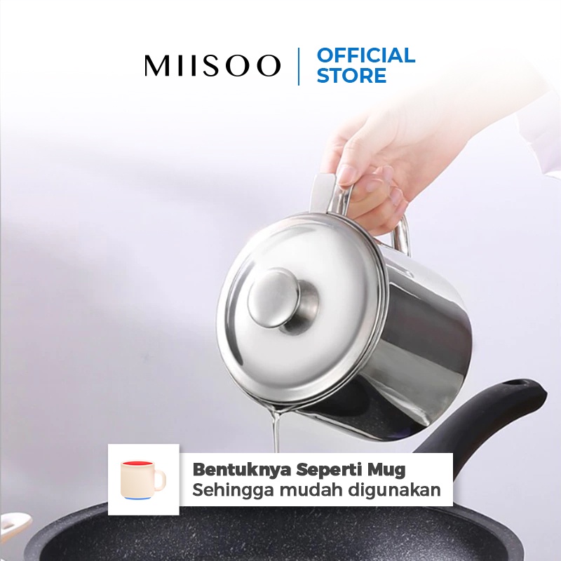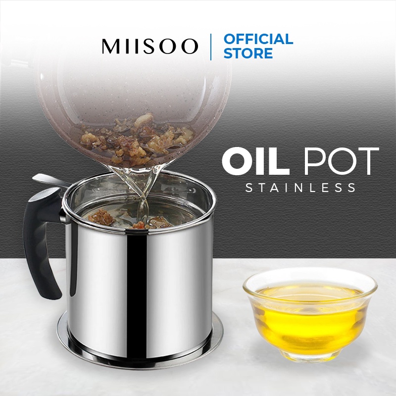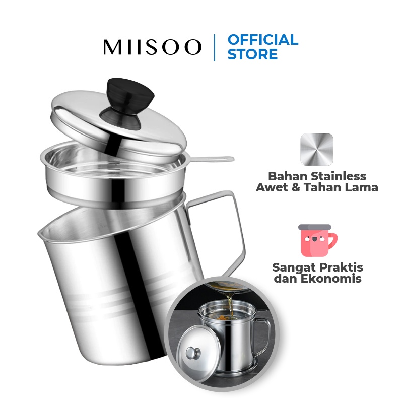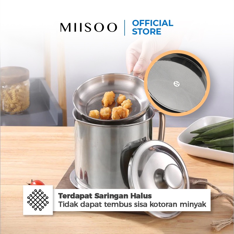 MIISOO Oil pot botol minyak Stainless tempat saringan minyak 1,3L Wadah Minyak Stainless