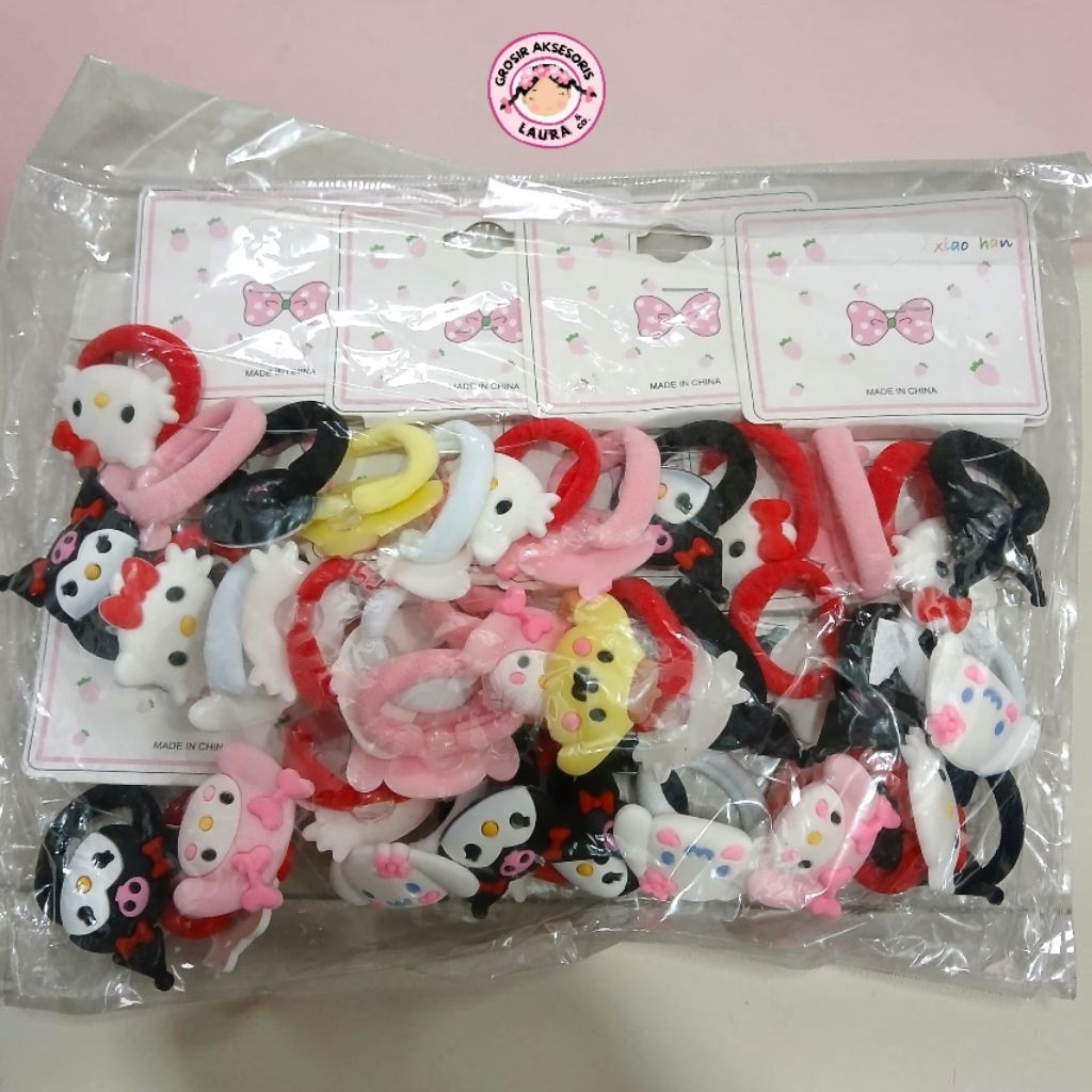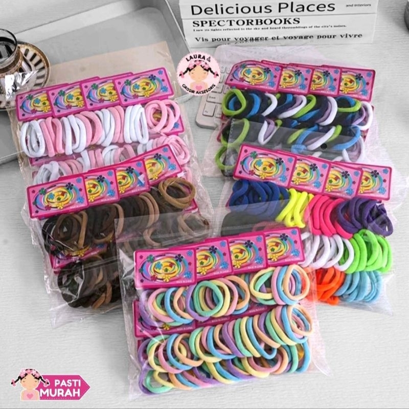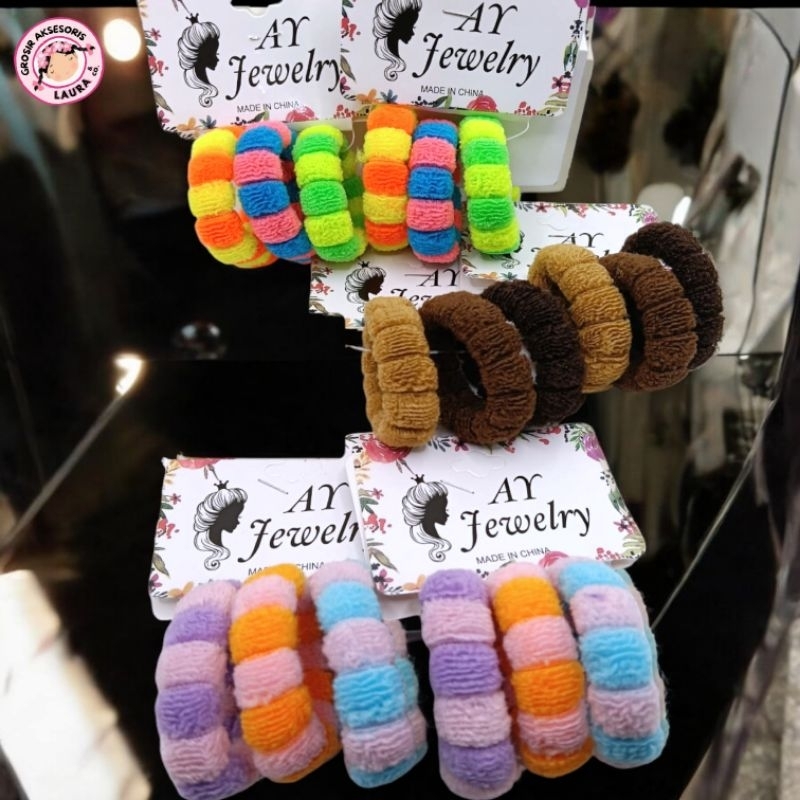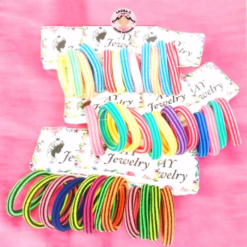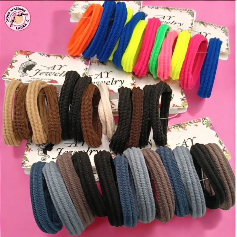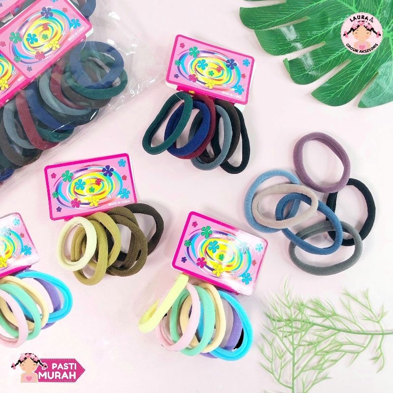 Ikat Rambut Gambar Polos Motif Besar isi 72pc grosir lusinan