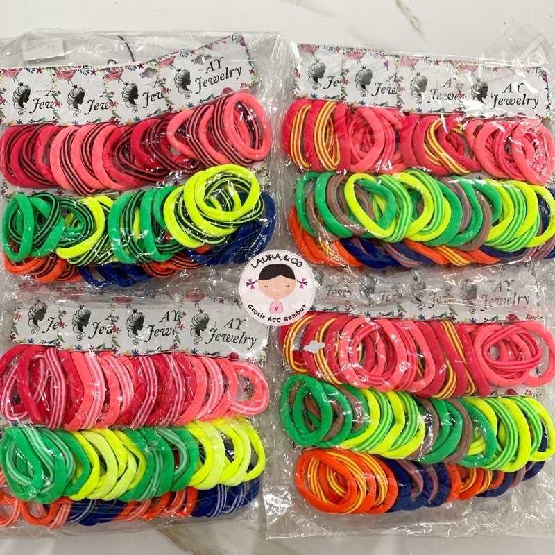 Ikat Rambut Elastis isi 48pc Grosir Lusinan Tali Kuncir MT 50 57 28