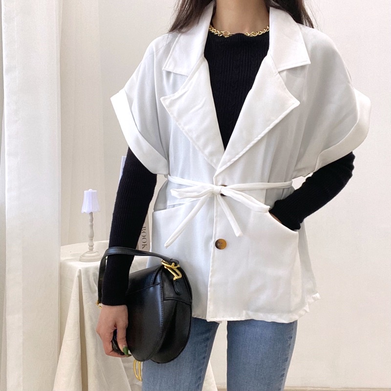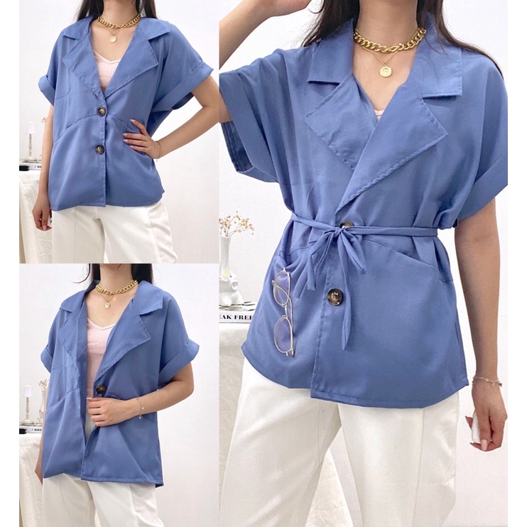 LANA Outer Top Casual Sleeveless with Belt Hijab Office / Atasan Blouse Wanita Ikat Pinggang 0345