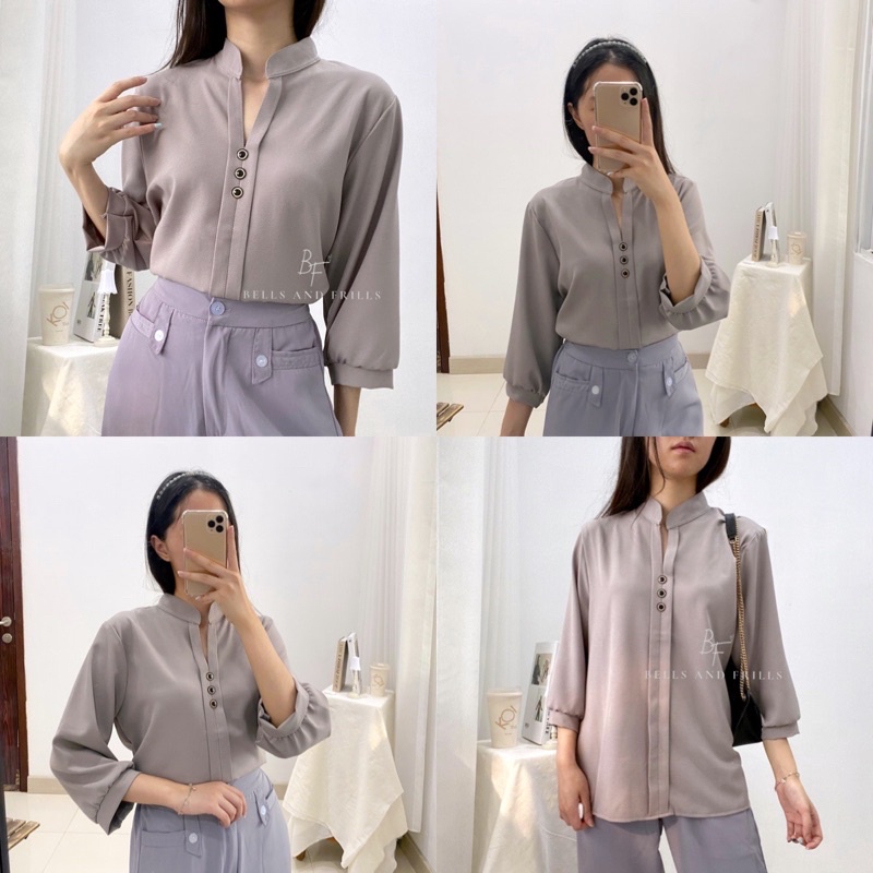 MIJOO Blouse Korea V-Neck Atasan Kantor Tangan Panjang Formal Top A16-1844