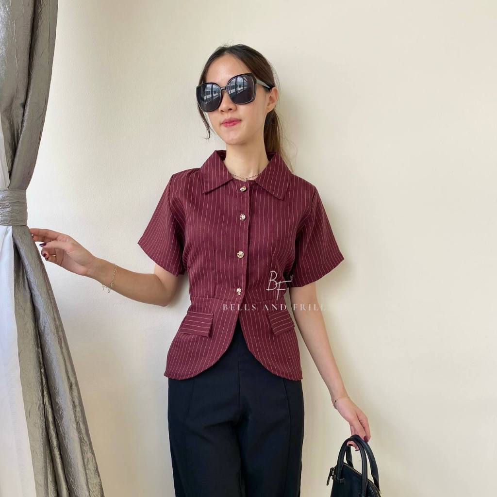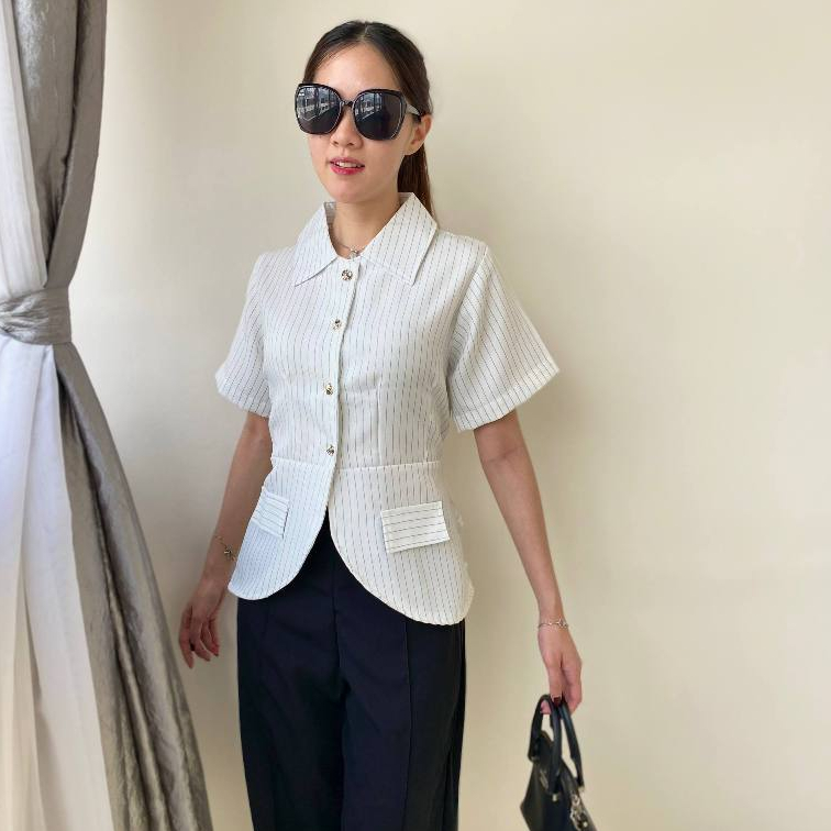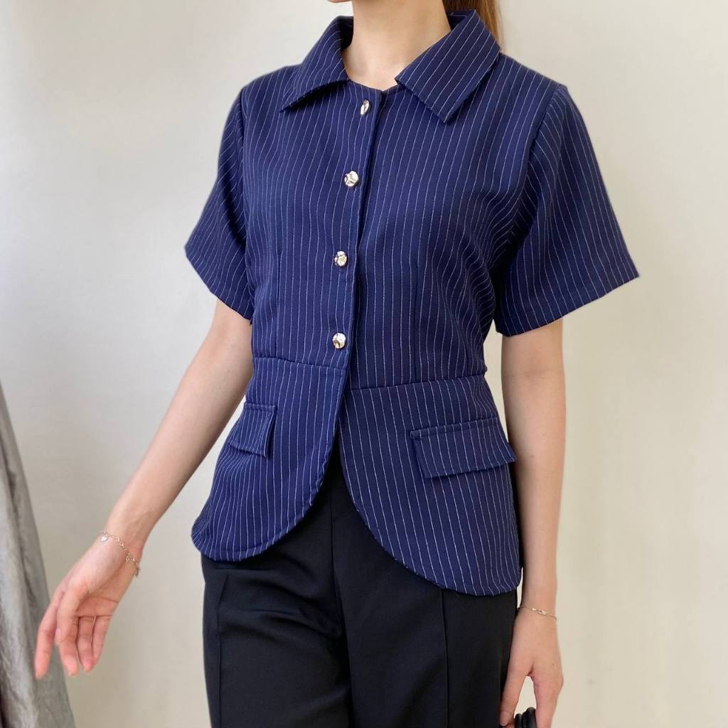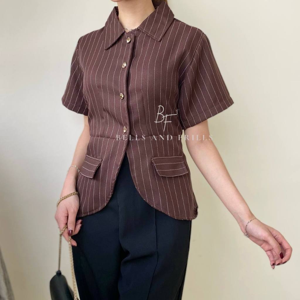 BOSTON Atasan Girl Boss Fitted Shirt | Kemeja kerja wanita fit garis stripe / Kemeja Kerja Wanita Press Body Pinstripe Salur 0515 B1251