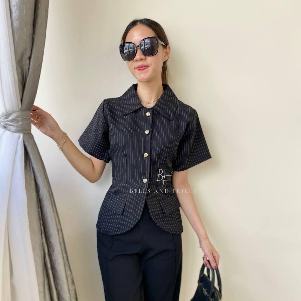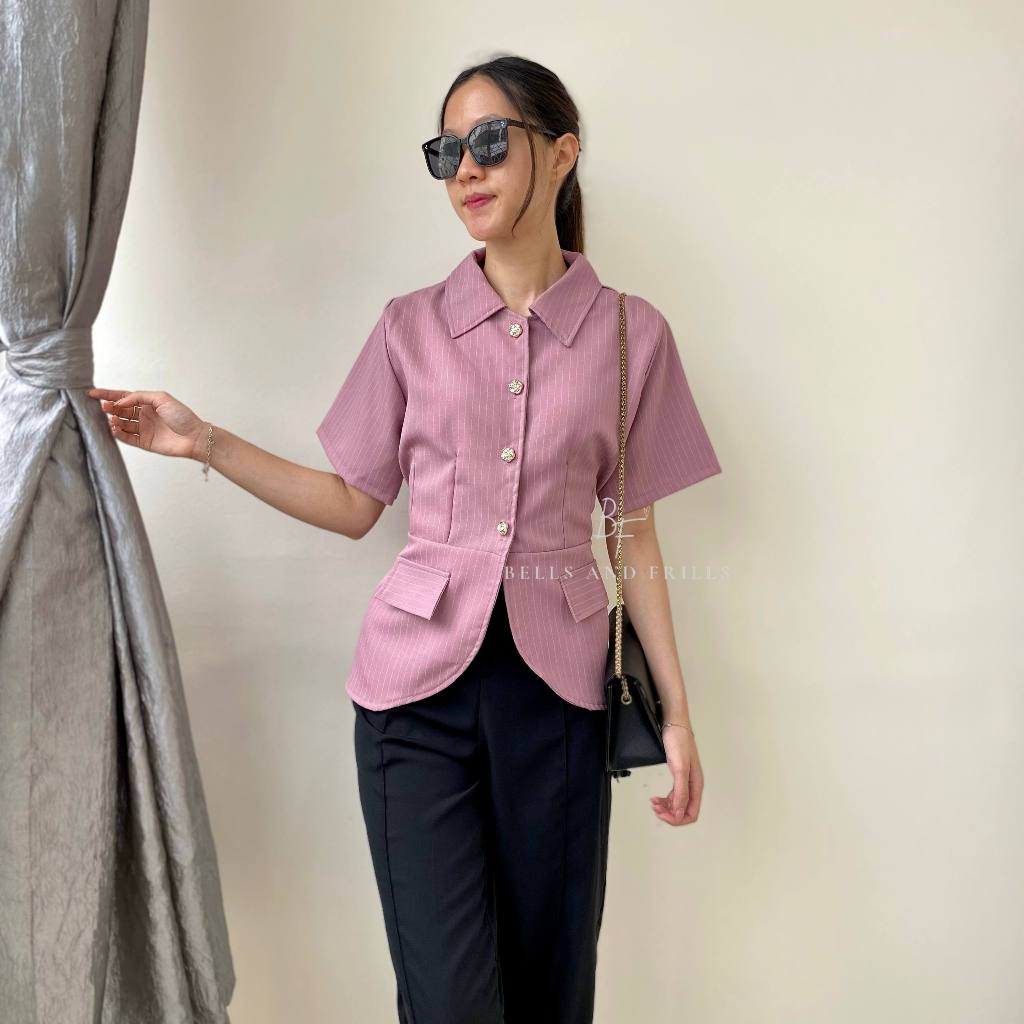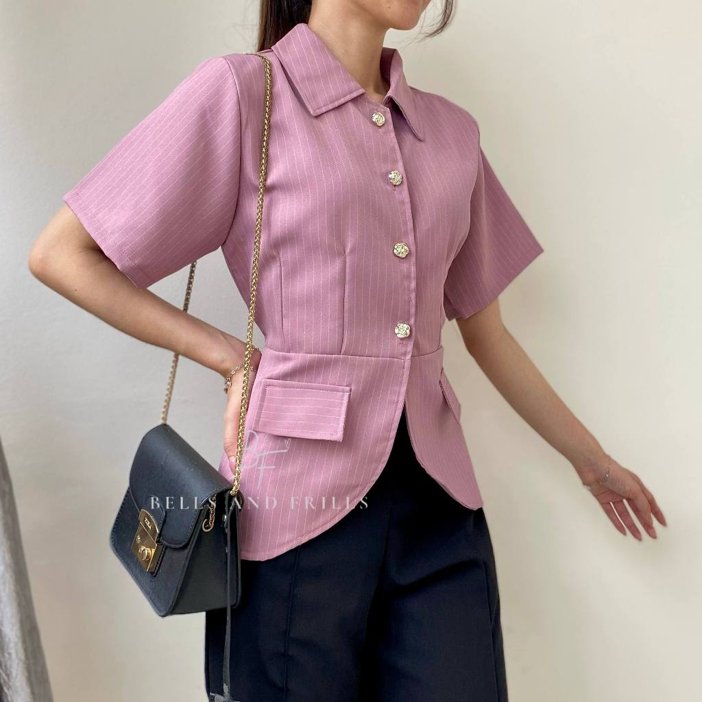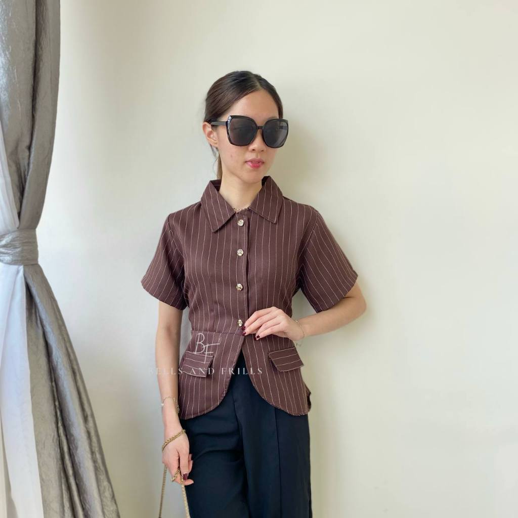 BOSTON Atasan Girl Boss Fitted Shirt | Kemeja kerja wanita fit garis stripe / Kemeja Kerja Wanita Press Body Pinstripe Salur 0515 B1251