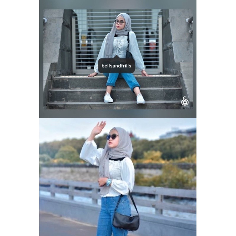 HANEUL White Blouse Sabrina Lace Long Sleeve Top