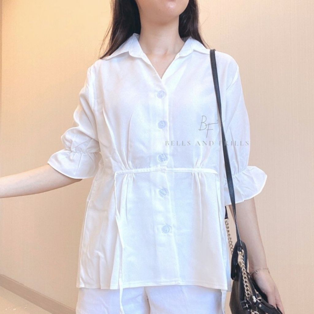 JODIE Blouse Kemeja 3/4 Sleeves with Full Button Adjustable Waist Straps 0093 B1020