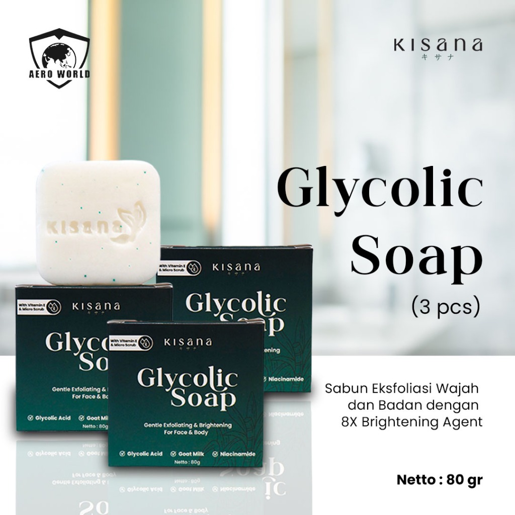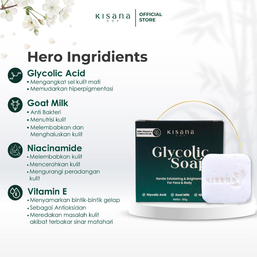(3PCS) KISANA Brightening Glycolic Soap Bar Sabun Eksfoliasi Badan Wajah Angkat Sel Kulit Mati 60gr