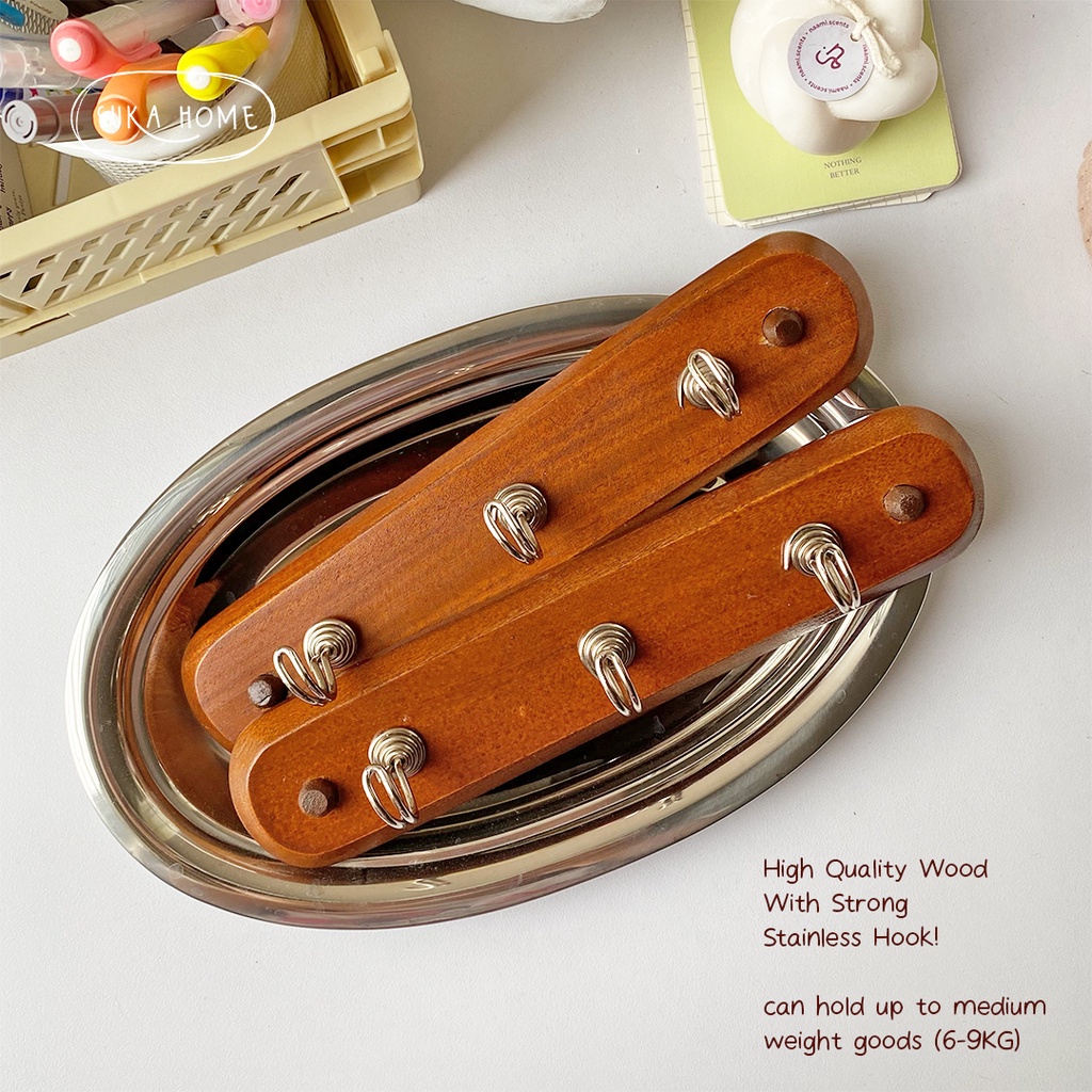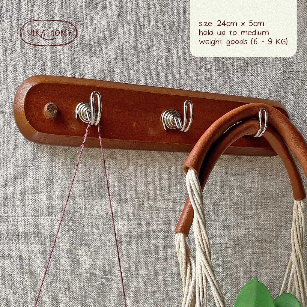 Gantungan Baju Kayu Kapstok Korea 3 Kait Wooden Hook Gantung Rak Dinding Vintage Kayu ala Korea by Suka Home